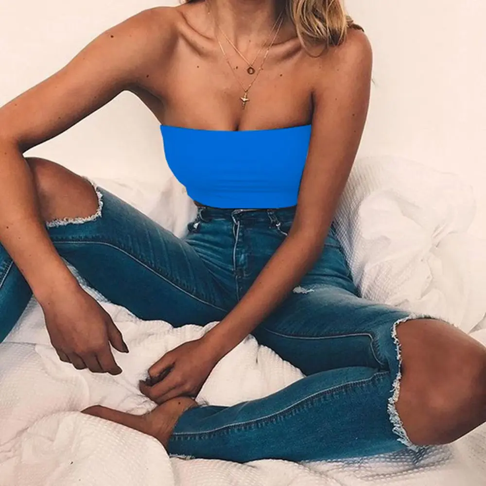 Летний сексуальный женский укороченный топ с открытыми плечами, повседневный бюстгальтер без бретелек, майки, однотонные футболки с открытыми плечами