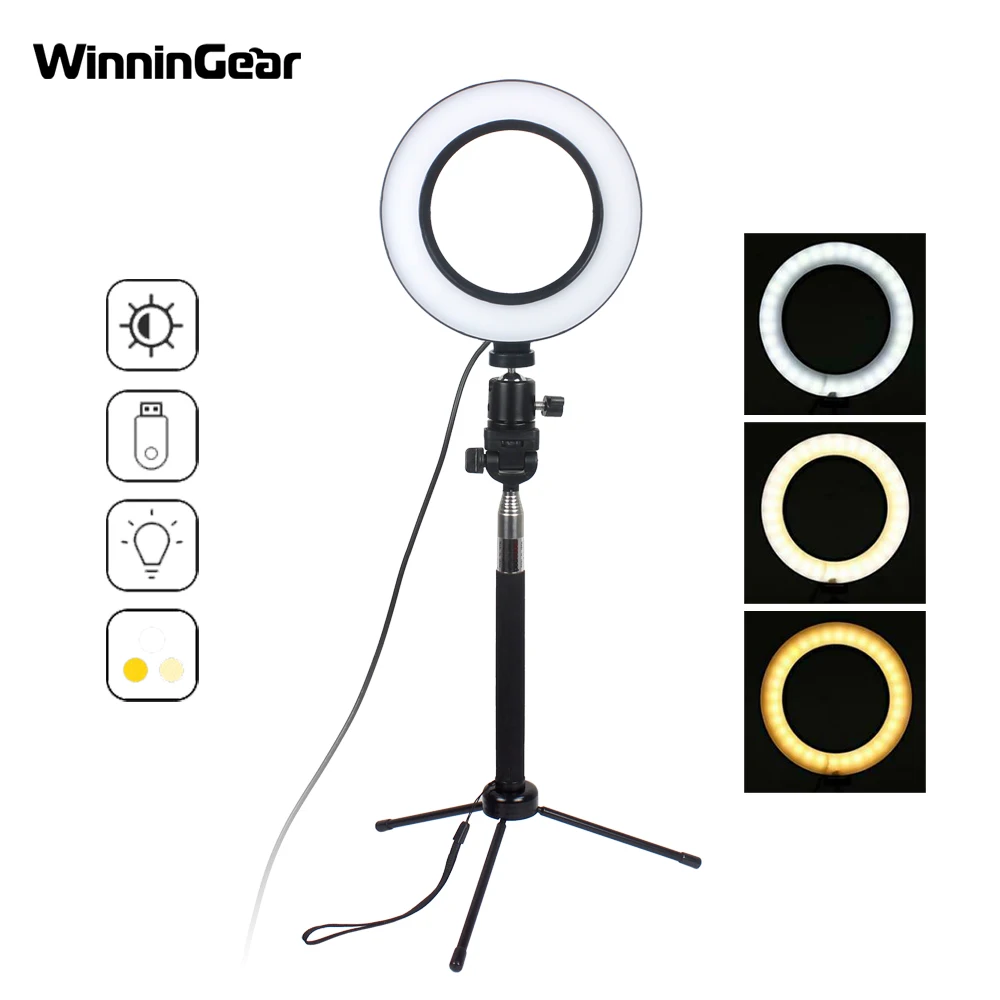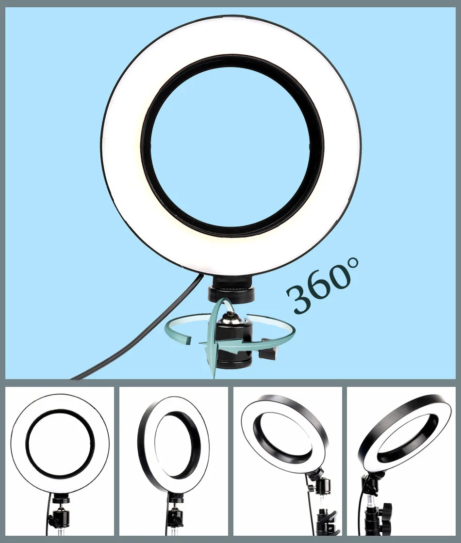 6 "16 см кольцевой светильник с регулируемой яркостью светодиодный светильник для селфи с кольцом для студийной фотосъемки с бесплатным штативом