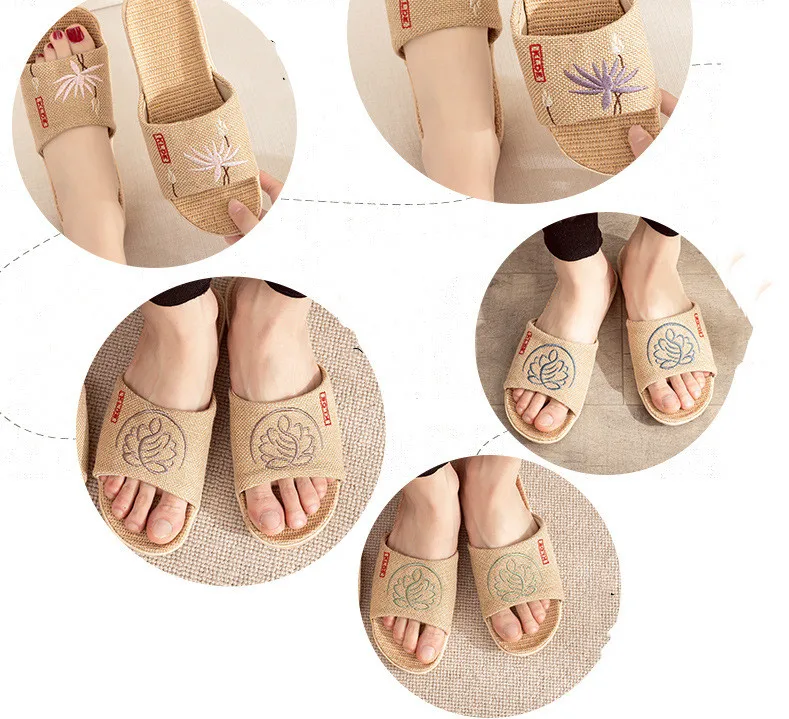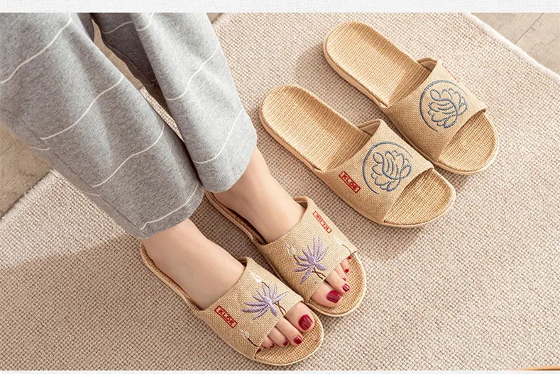 Отзывы о Тапочки льняные Suihyung с вышивкой для женщин и мужчин новые летние домашние