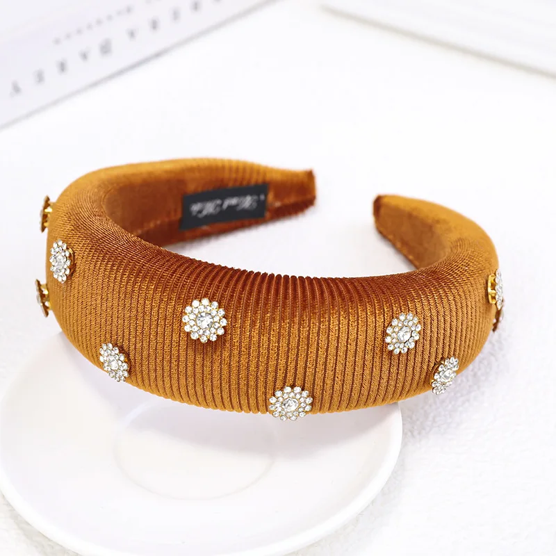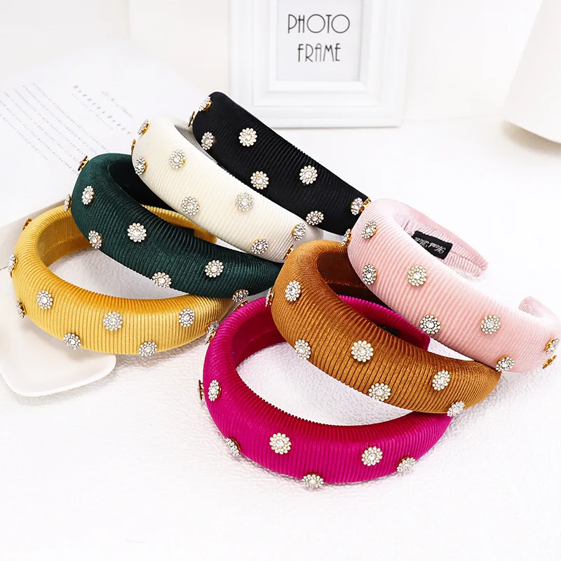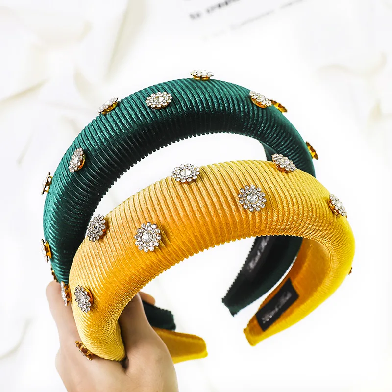 ОписаниеОбруч для волос в стиле панк 2020, стразы для девочек с цветами, Золотая Бархатная губка, украшение для волос, милые обручи для волос, модные аксессуары для волос Тип изделия: ободки для волос Материал: ткань Размер: 4 см Цвета: 8 цветов Пол: для женщин и девушек Упаковка: 1 шт. opp пакет посылка