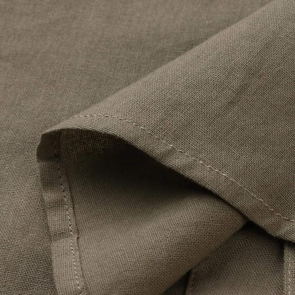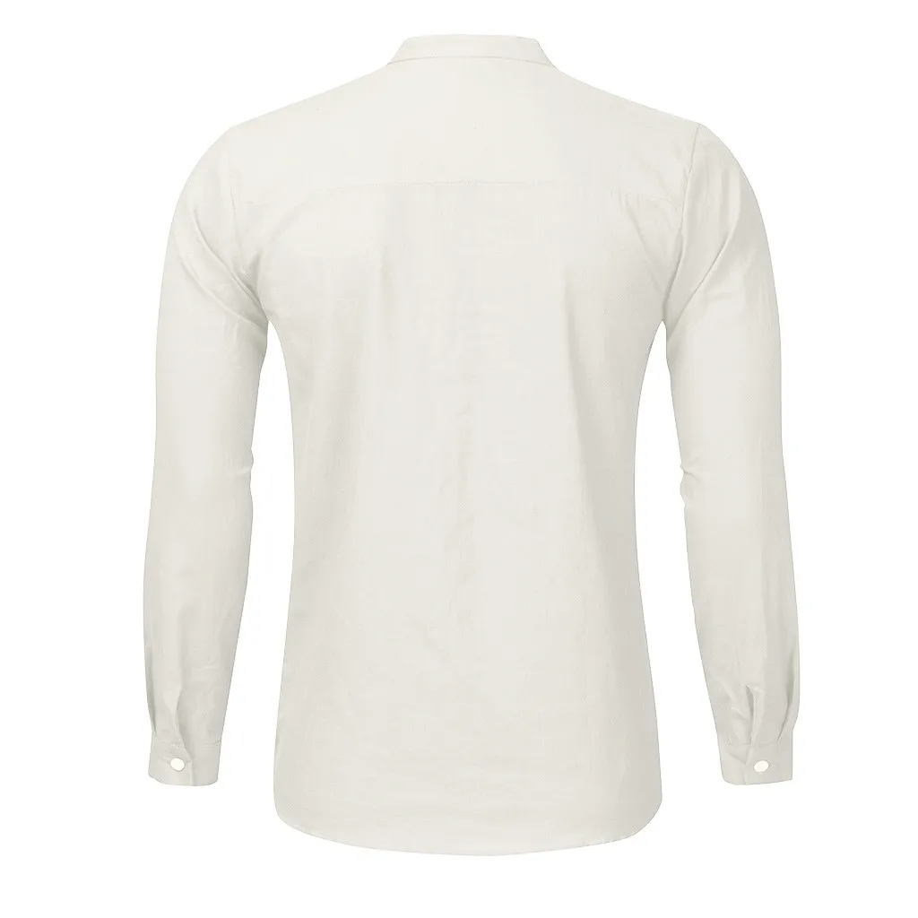 Отзывы о Мужская белая однотонная пляжная рубашка без воротника с пуговицами и длинным