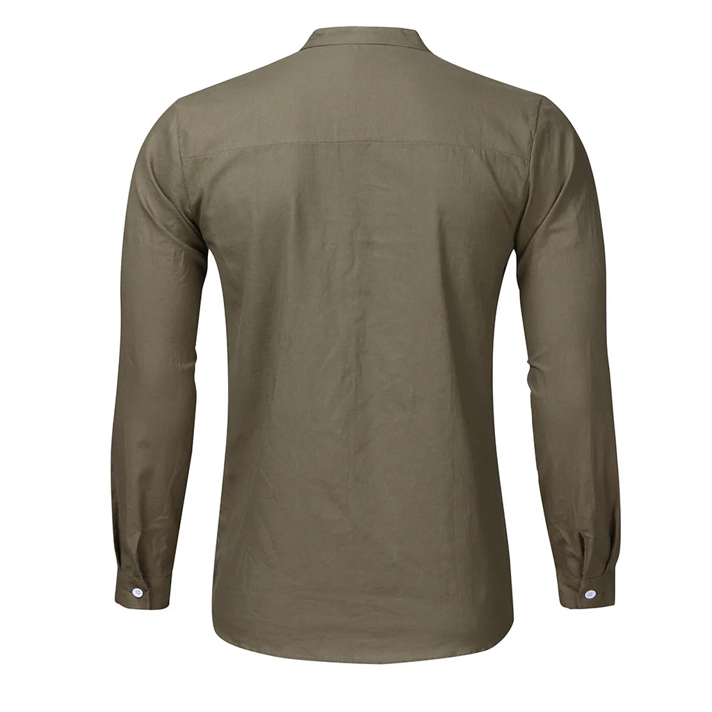 Модная мужская повседневная однотонная пляжная блуза с круглым вырезом и длинными рукавами на пуговицах