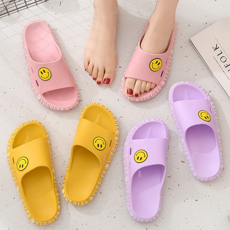 Отзывы о 2020 Summer Women Slippers House Shoes Woman Bathroom Smiley Flat Female Platform Indoor Men Transparent Обувь