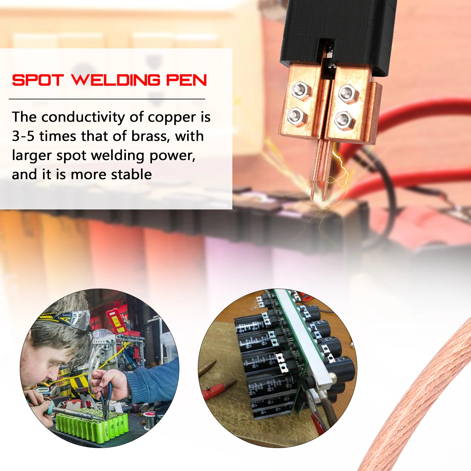 Основной медный стержень изготовлен из меди 4*15 мм, а точечная сварочная головка имеет Медь 5*20 мм для повышения теплоотдачи, что гарантирует отсутствие повышения температуры и тепла при большой партии точечной сварки.