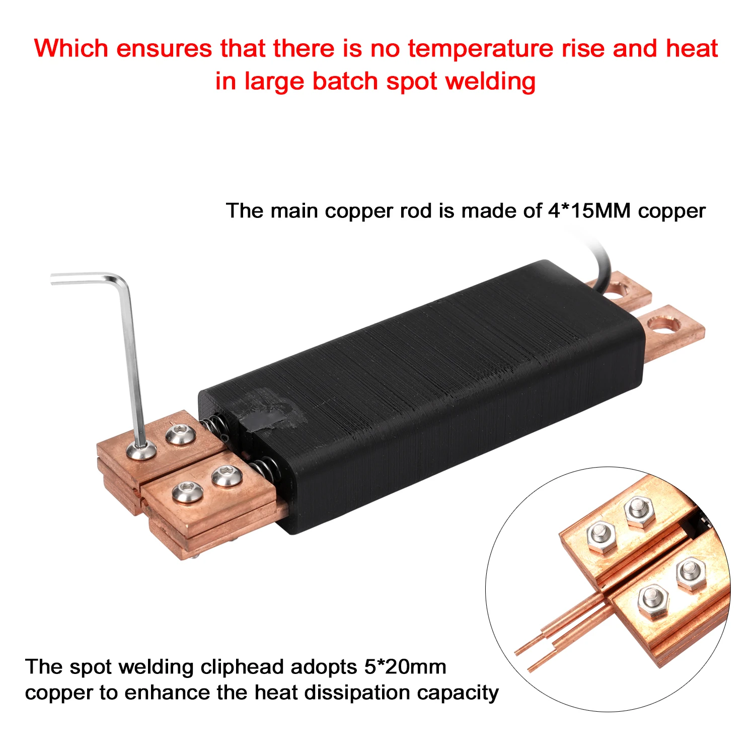 Это своего рода Высококачественная точечная сварочная ручка, основной медный стержень изготовлен из меди 4*15 мм, а точечная сварочная головка принимает Медь 5*20 мм для увеличения теплоотвода, что гарантирует отсутствие повышения температуры и тепла при большой партии точечной сварки. Встроенные двойные пружины в ручке и оснащены регулируемыми винтами под давлением, вращением против часовой стрелки для увеличения давления, вращением по часовой стрелке для уменьшения давления. Вы можете попробовать.
