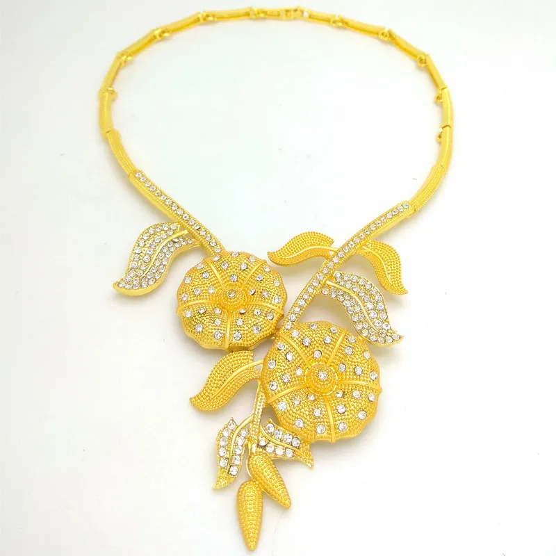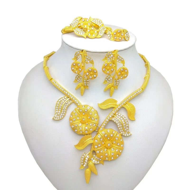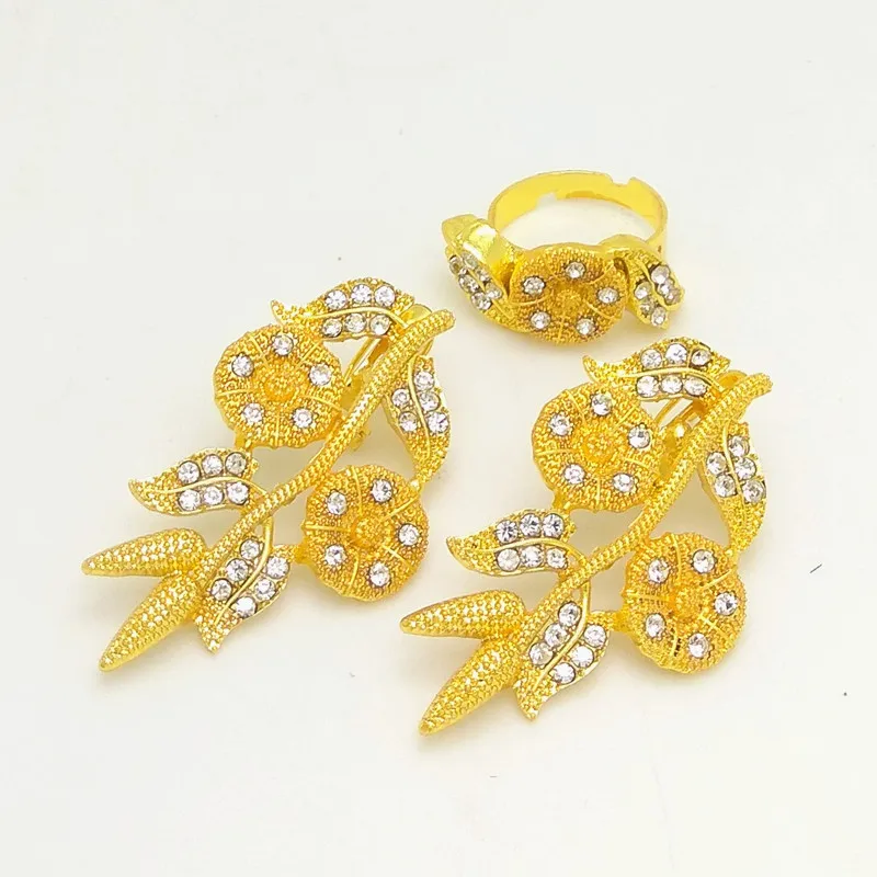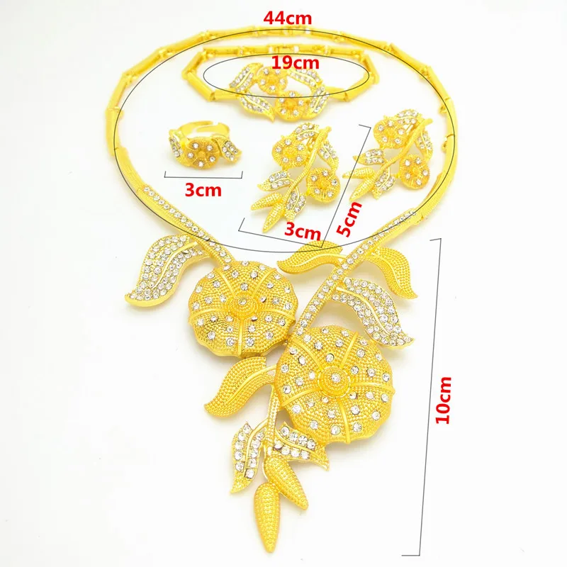 Kingdom Ma New Women Fashion Gold Color African Nigerian Jewelry Set Wedding Necklace Bracelet Earrings Ring Jewerly Sets