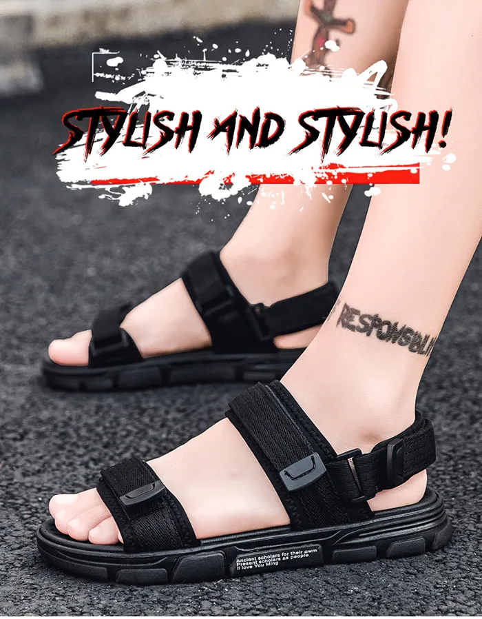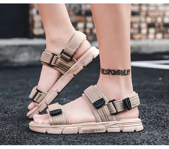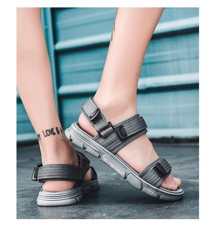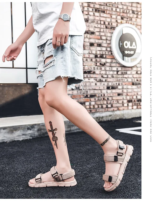 Простые Модные мужские сандалии Однотонная уличная пляжная обувь Мужские летние - купить