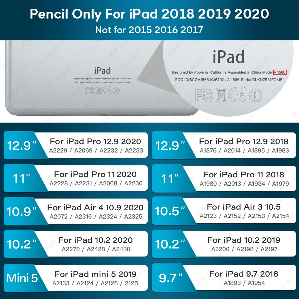 Поддерживаются только модели iPad на фотографиях ниже. Другие модели не поддерживаются. Перед покупкой, пожалуйста, проверьте код на спине и сверьтесь с кодом на фото. Если код вашего iPad отсутствует на фотографии, это означает, что карандаш не поддерживает ваш iPad. Пожалуйста, не покупайте.