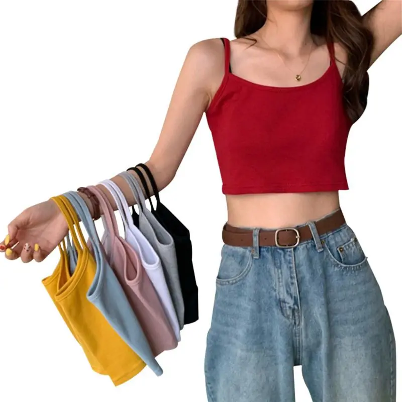 Отзывы о Women Summer Sexy Navel Camis Vest Solid Color Spaghetti Strap Basic Crop Top 63HC Женская одежда