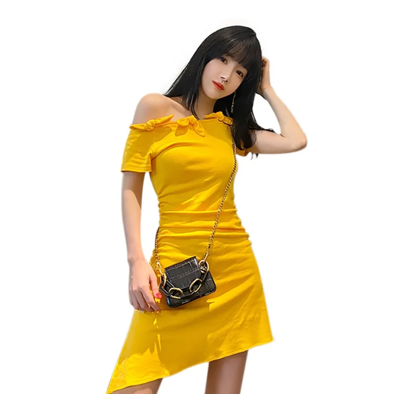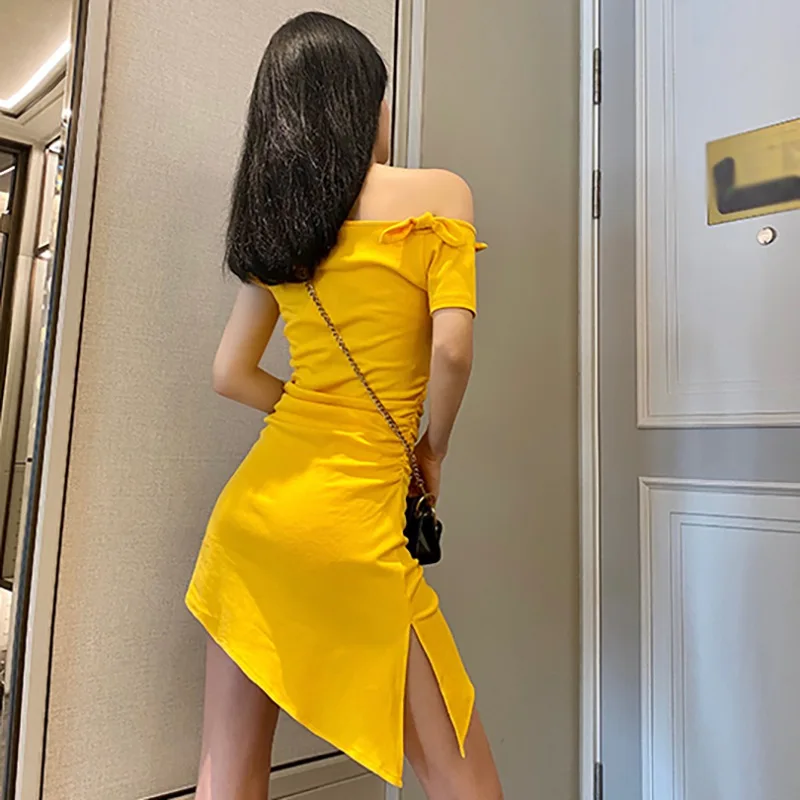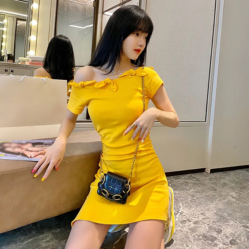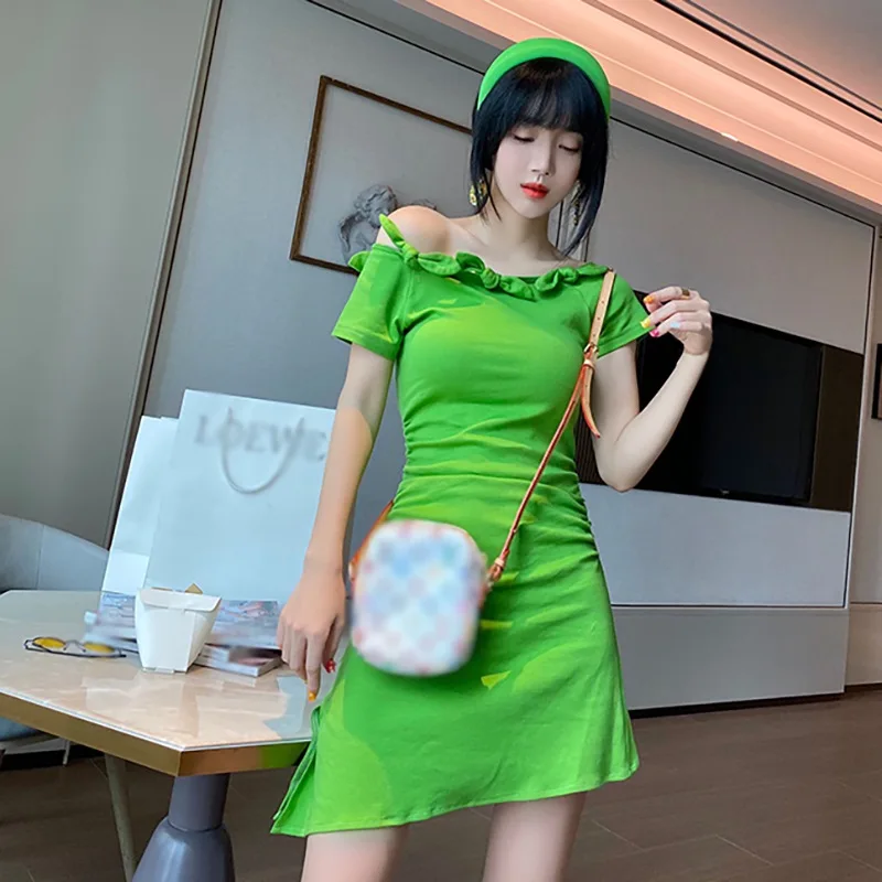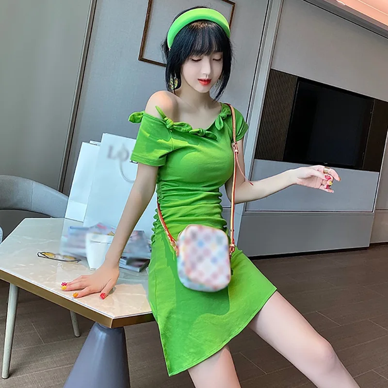 Features: temperament, sloping shoulders, bare shoulders, sexy, slim, short skirt