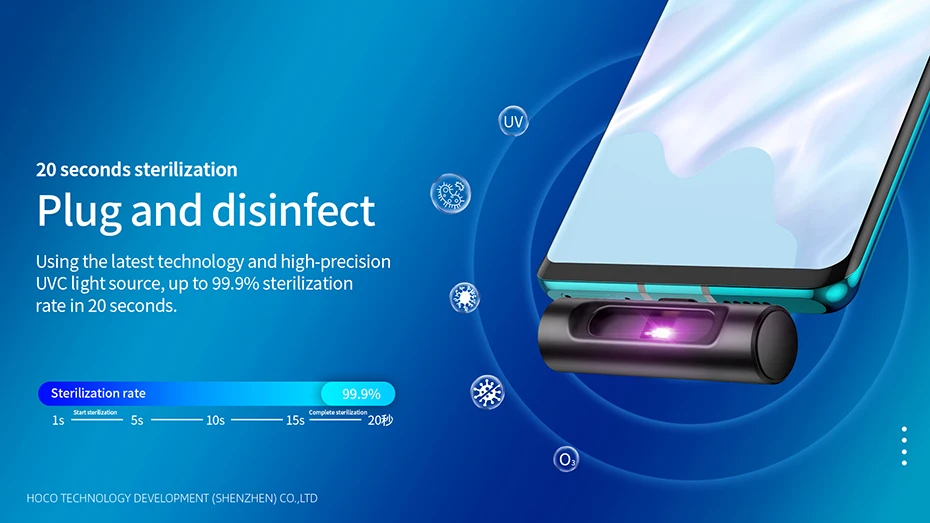 Используя новейшие технологии и Высокоточный источник светильник UVC, уровень стерилизации до 99.9% за 20 секунд.