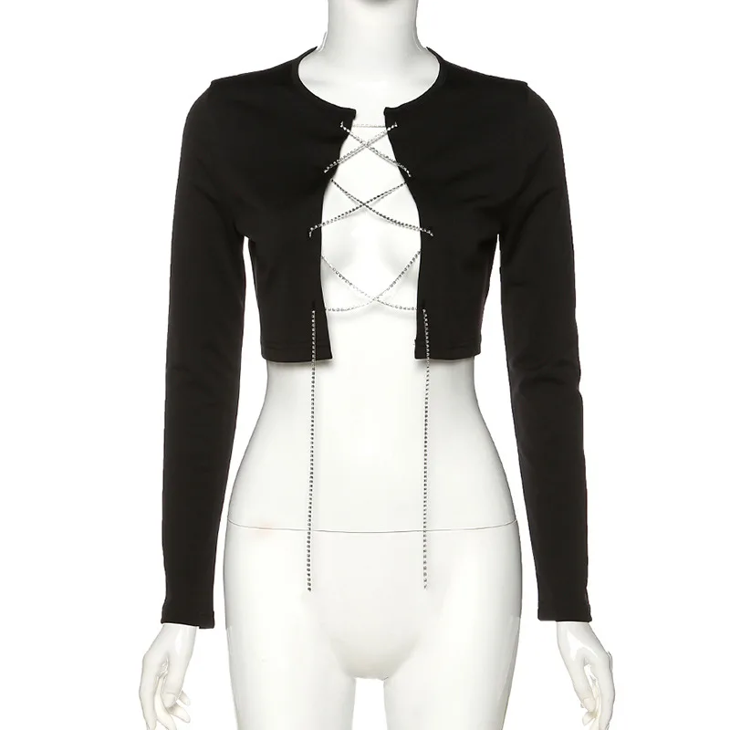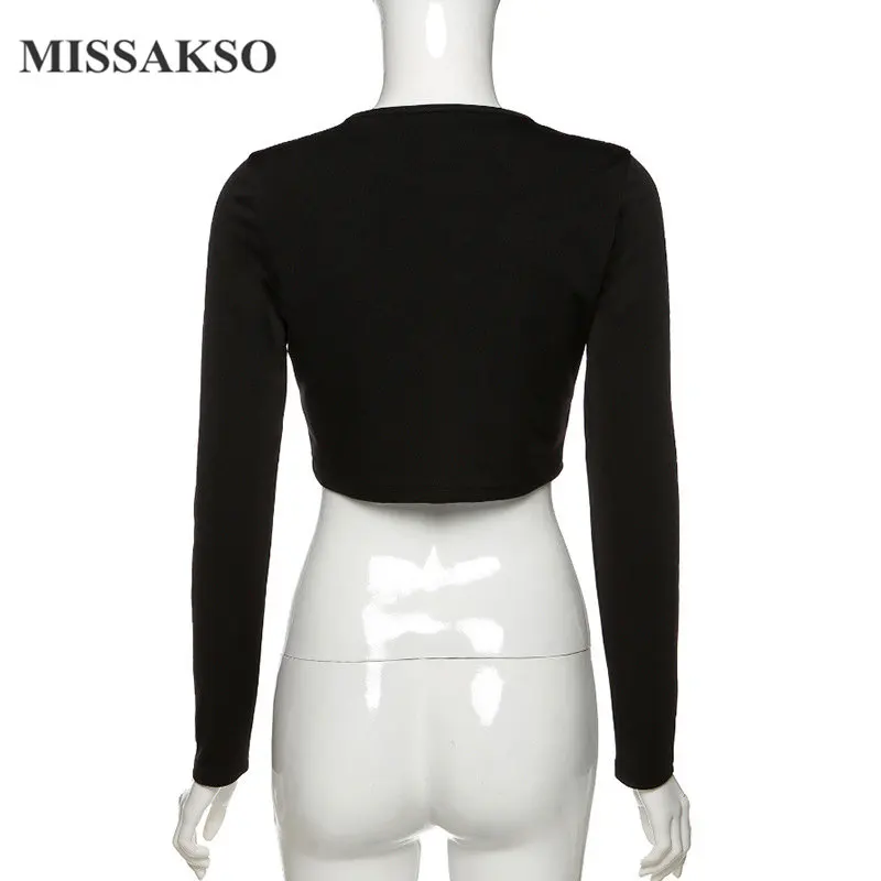 Осенний Однотонный черный женский кроп топ Missakso женские футболки для ночного - купить