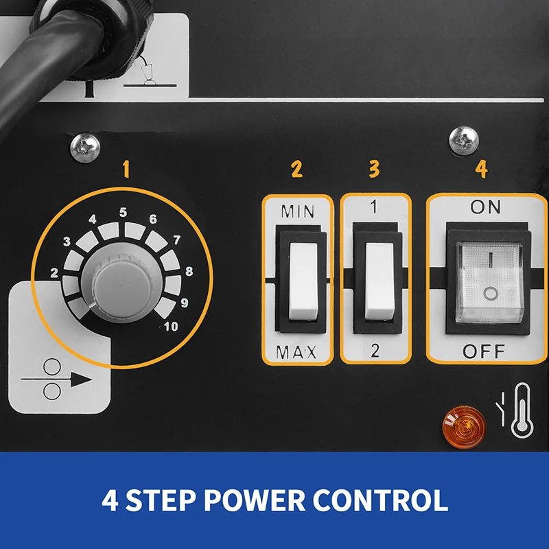 Профессиональный и безопасный:Регулируемая скорость подачи. Легко регулируйте ток, отрегулировав 4 кнопки для мин/Макс, 1/2. Также имеет ручку вращения для регулировки скорости подачи провода.