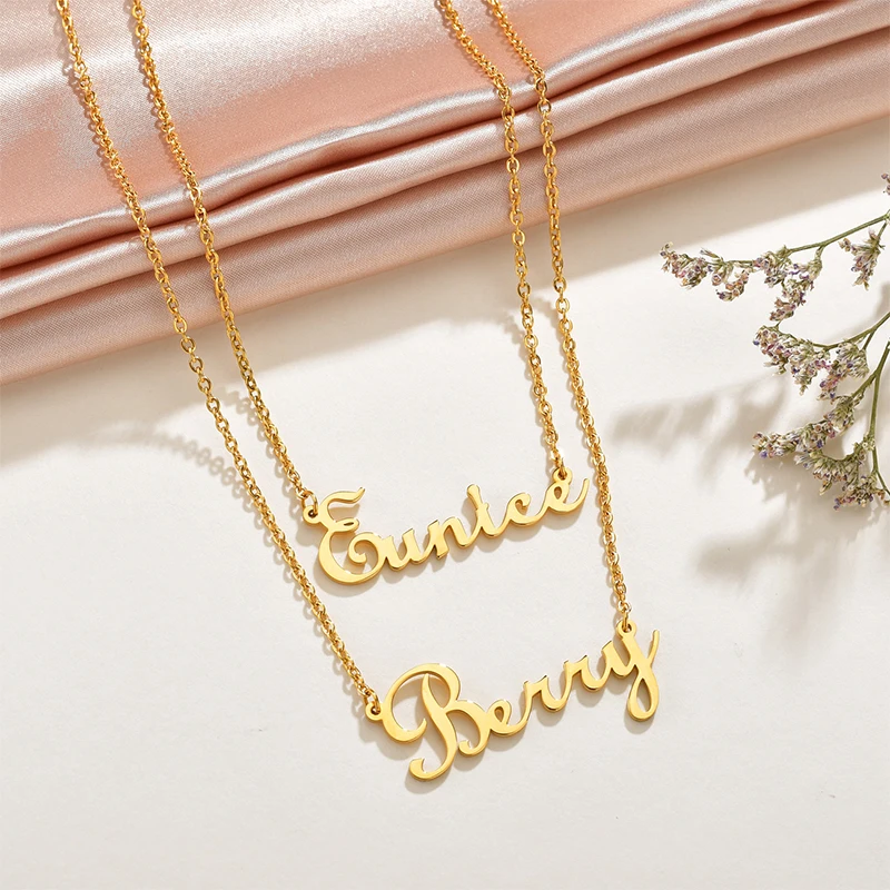 Brand NameRaexrageModel NumberL-DZK-00041-01MaterialMetalGenderUnisexStyleCute/RomanticItem TypeCustomized NecklacesOccasionEngagementCustomized TypeNAMEMetals TypeStainless SteelShape\patternGeometricFine or FashionFashionCompatibilityAll CompatibleChain TypeO-chainNecklace TypeChains NecklacesPendant Size1.5cm*3.5cmMeasurement unitpiece/piecesEach pack1ColorGold/Rose Gold /SteelMaterialHigh Quality Stainless SteelMaterial thickness1.5mmPlace Of OriginGuangdong, ChinaGenderWomen/Girls/ChildsStyleFashion/Trendy/Elegant/Lovely/Cute/RomanticServiceFree ShipingprovideDrop shipping, Wholesales,contact usOccasionPWedding/Engagement/Graduation/Party/Birthday/Mother's Day/DailyGift ForFamily/Wife/Mother/Daughter/GirlsSister/BFFUnavailable in