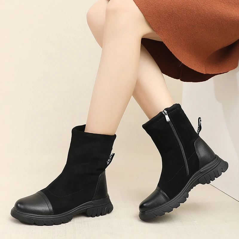 Описание: Женские зимние ботинки теплые ботильоны на молнии с толстым мехом женские зимние замшевые кожаные ботинки женская обувь на низком каблуке и толстой подошве женские ботинки высокого качества