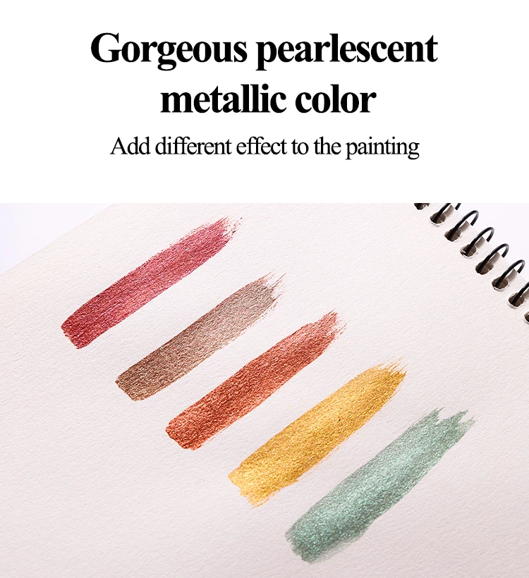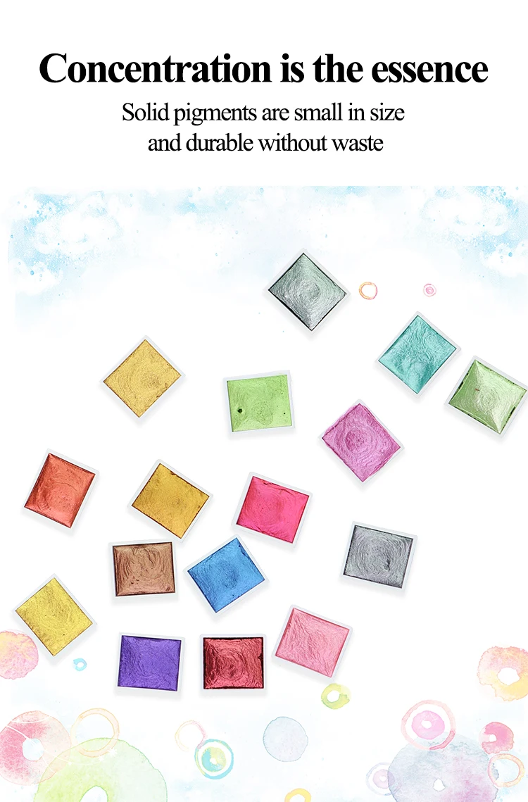 Перламутровая однотонная Акварельная краска Перламутровый акварельный пигмент, с яркими цветами, дает вам различный опыт Перламутровый цвет, сочетающийся с креативной картиной Яркие цвета, можно использовать после погружения в воду Концентрация-это эссенция Твердые пигменты маленького размера и долговечные, без отходов Хорошая растворимость, легко погружать | Тонер высокой чистоты, растворим в воде Великолепные перламутровые/металлические цвета | Добавьте разный эффект к живописи Подходит для различных стилей живописи, яркое небо, модный костюм, креативная живопись