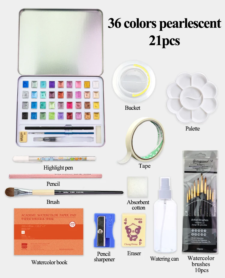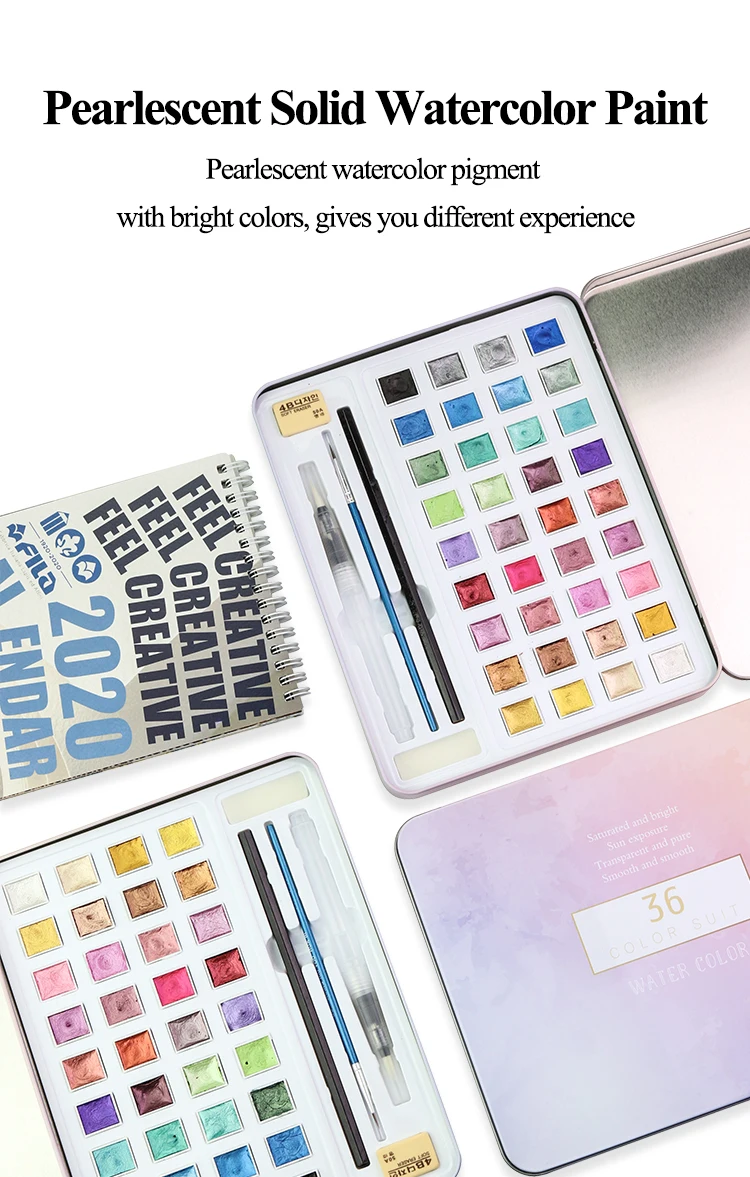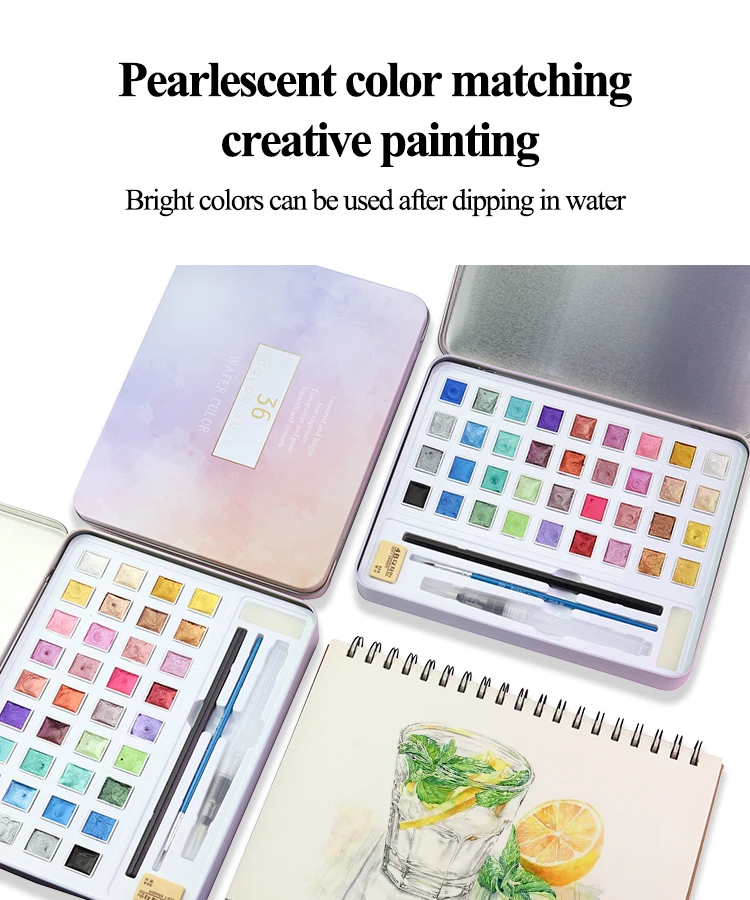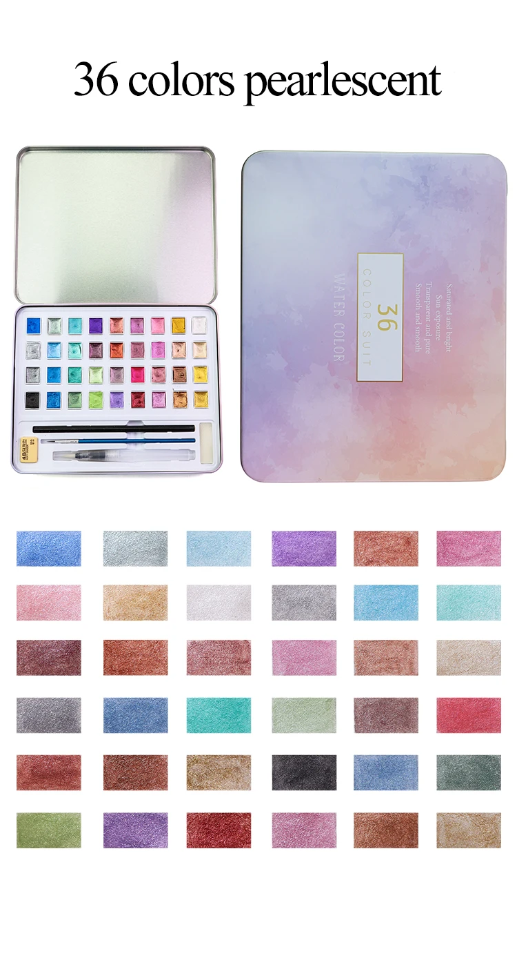 12/36/48 цветные однотонные акварельные краски в наборе, Набор цветных красок, текстурированный перламутровый пигмент в виде воды, металлический блеск/Блестящая акуарета, товары для рукоделия
