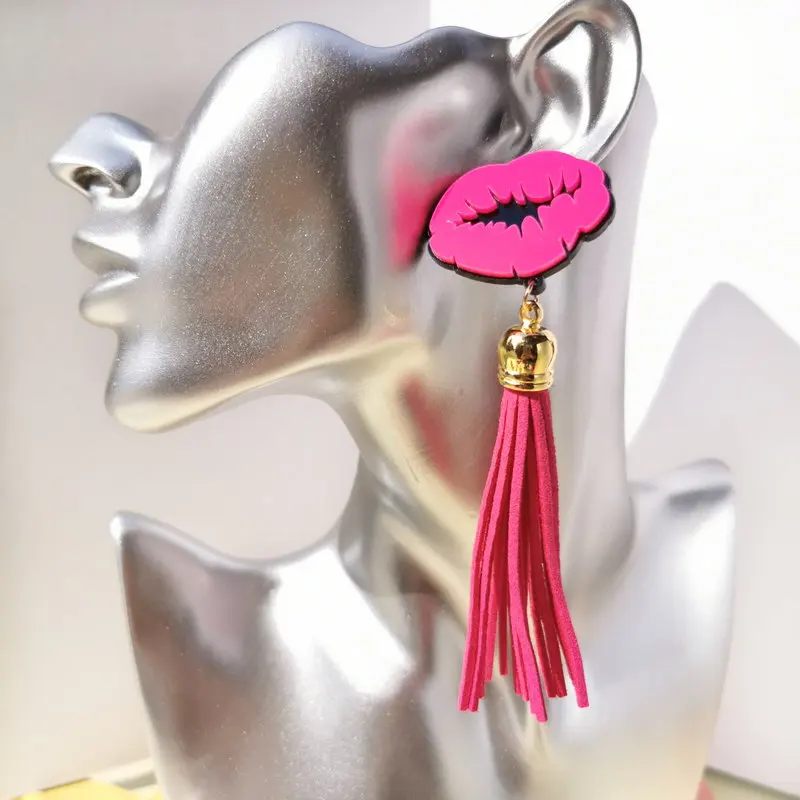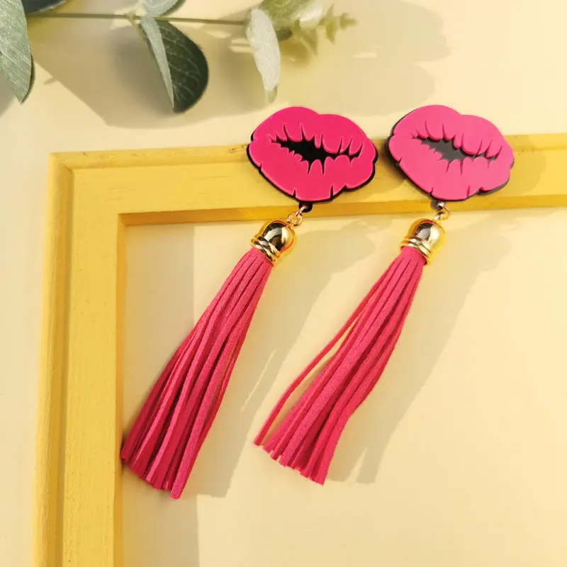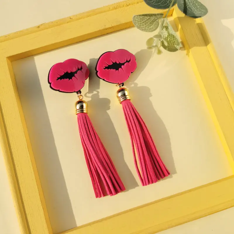 Купить QUMENG Мода в винтажном стиле украшенные кисточками розово-красный серьги-гвоздики