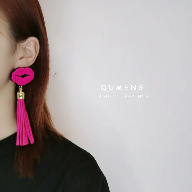 QUMENG Мода в винтажном стиле украшенные кисточками розово-красный серьги-гвоздики - купить