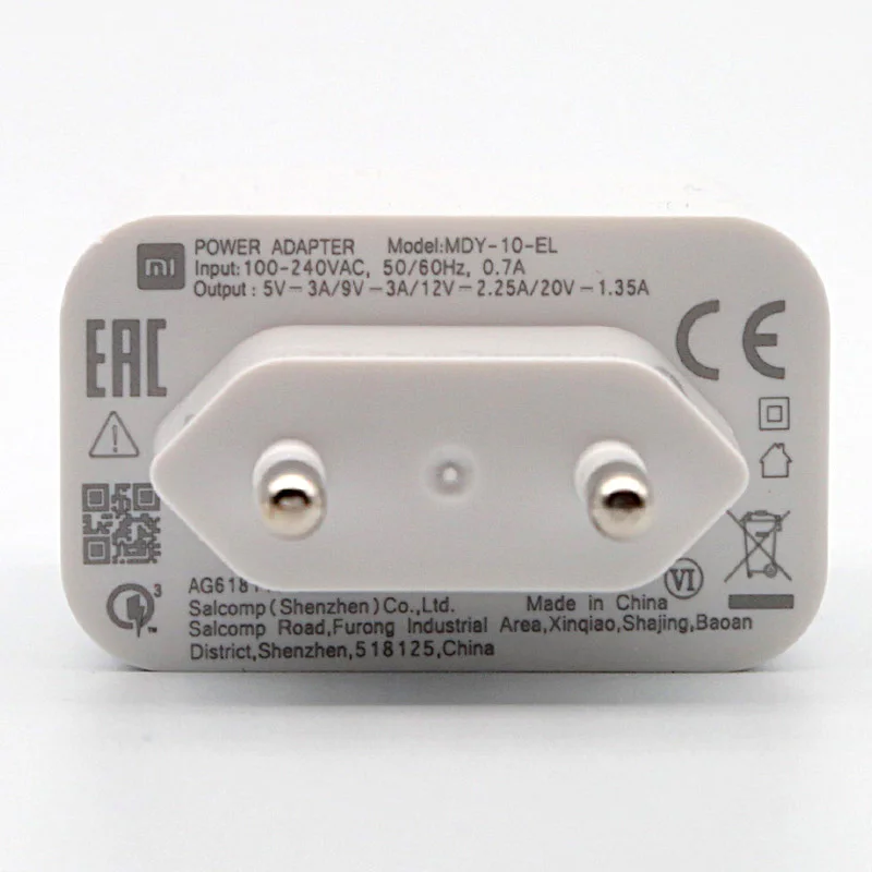 Xiaomi быстрое зарядное устройство 27 Вт оригинальный ЕС QC 4,0 турбо Быстрый зарядный адаптер usb type c кабель для mi 9 se 9t 10 Redmi note 8 K20 Характеристики: Высокое качество QC3.0 быстрое зарядное устройство 27 Вт адаптер --- подача заявки на 1 м 3A Type-C кабель для передачи данных-вход 100-240VAC 50/60 Гц, 0.7A-выход 5В = 3A, 9 V 9 V = 3.5A / 12V = 2.25A / 20V = 1.35A Совместим со всеми смартфонами с портом type-C. Подходит для Xiaomi mi 9 9se 8 8Se A3 A2 mi X 2 S mi x3 mi x4 Max 3 red mi K20 Pro / red mi nota 8 8Pro note 7 7Pro / Xiaomi CC9 PRO CC9 CC9e Black shark2 F1 мобильного телефона Примечание: настенное зарядное устройство не поддерживает беспроводную зарядку, что означает, что вы не можете заряжать Беспроводное зарядное устройство на рабочем столе.
