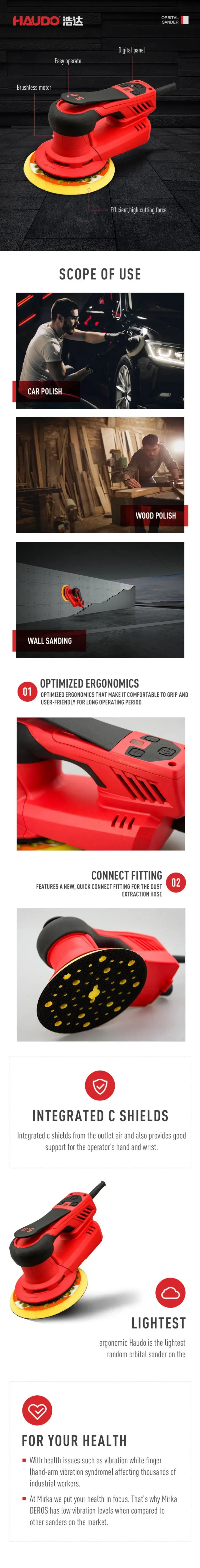 Отзывы о Шлифовальная машина на проводе Haudo Brushless 350W 220V/110V случайной переменной скорости для отделки дерева углов и полировки Mirka style