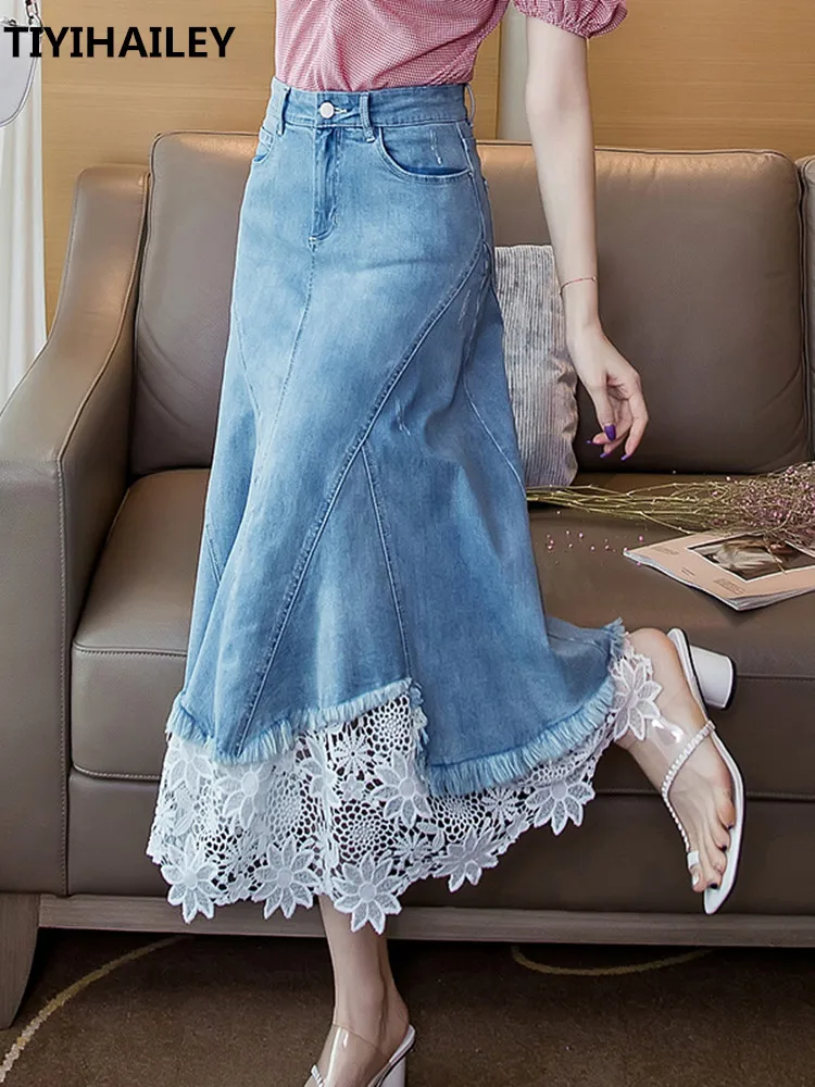 Женская кружевная юбка в стиле пэчворк TIYIHAILEY-до середины икры с высокой талией - купить