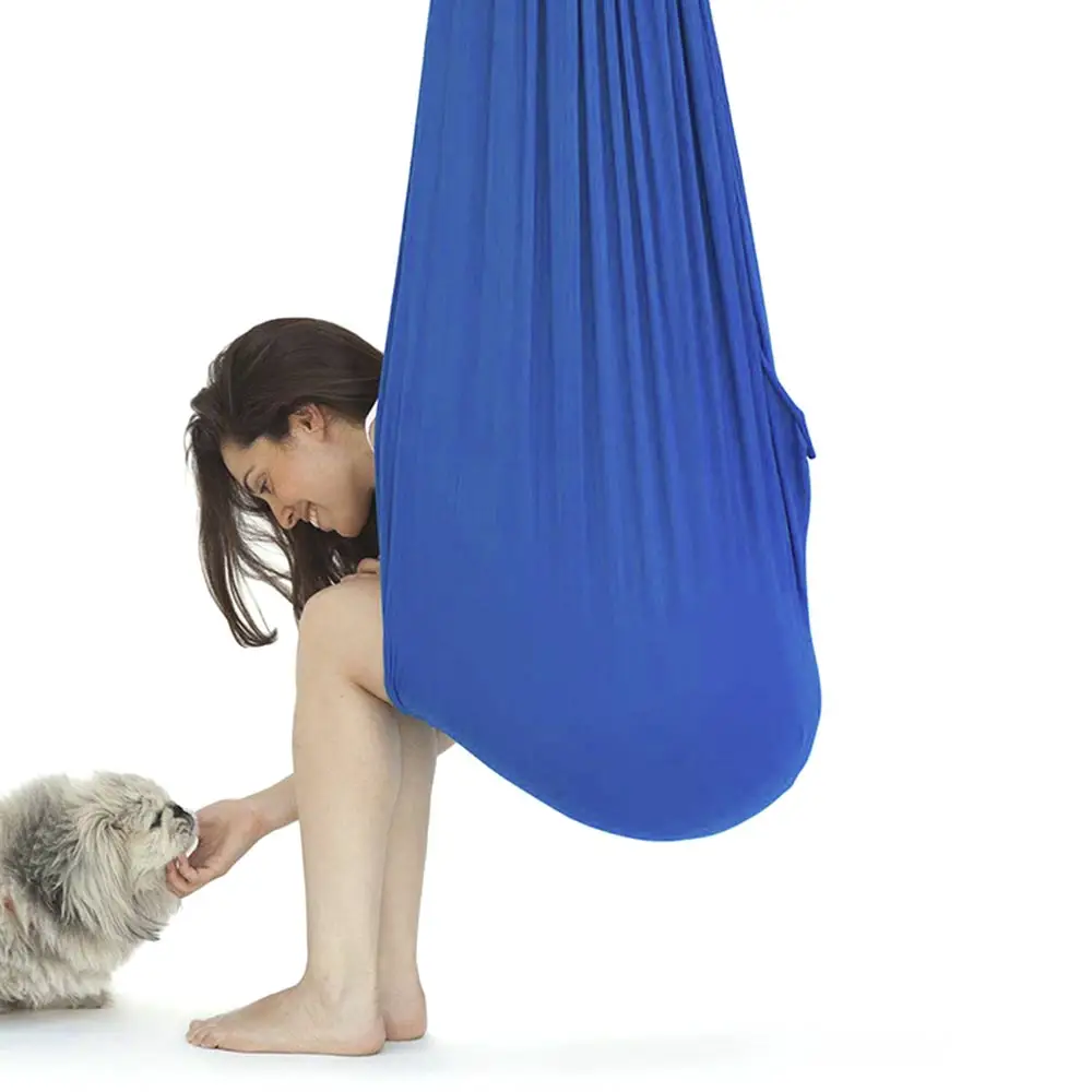 Child/Adult Hammock Swing Home Relax Hanging Swing Indoor Yoga Hammock Nylon Trapeze Stretch Training Bands Baby Furniture❀ Item DescriptionProduct Type: Household hammock/swing solid colorMaterial: NylonColor: lake blue, wine red, royal blue, sky blue, dark purple, pinkBearing Weight: 100kgHammock size: 100*280CM (length * width)Packing size: 24*15*6cmPacking method: PE bagPacking list: 1pcs*Hammock 1pcs*Connecting rope 1pcs*Extension strap 1pcs*8 steel lock❀ Item Feature♡ Rugged ring with adjustable height , meet your needs.♡ Good abrasion resistance& good air permeability ,prolong service life.♡ Simple installation steps for you , provide more convenient use.♡ This hammock swing can be mounted indoors as well as to an outdoor porch, swing set, or tree.♡ The swinging motion strengthens the vestibular and proprioceptive systems by teaching your child brain and body to work together. This sensory integration greatly improves your child coordination, balance, body awareness, and concentration.❀ Item Show