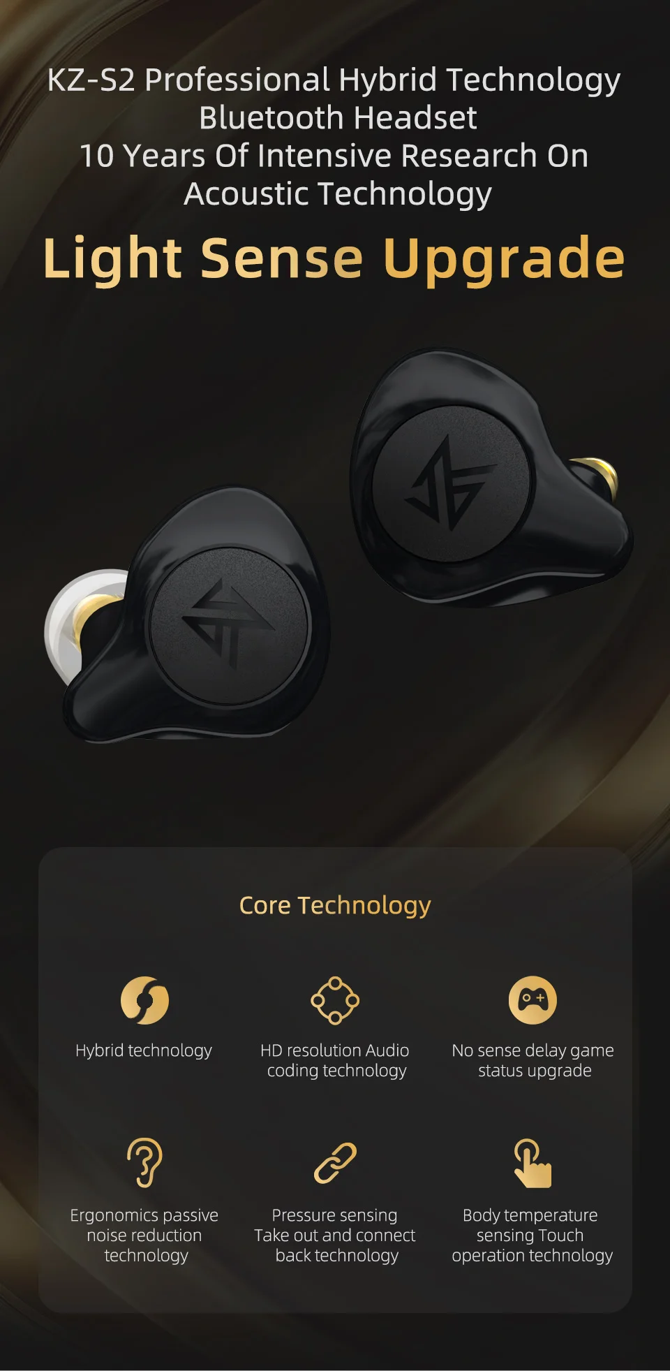Пожалуйста, обратите внимание: Беспроводная гибридная bluetooth гарнитура KZ-S2 инновации производительности, комплексное обновление AAC улучшенная передача аудио HIFI качество звука Бесчувственный режим задержки Игры Bluetooth 5,0