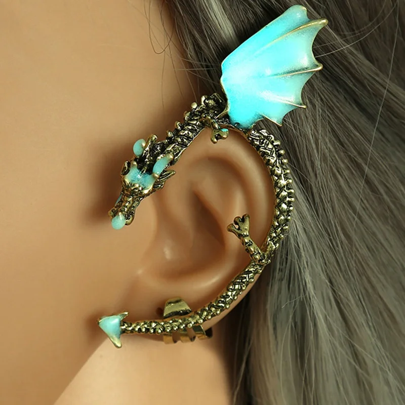 Сверкающие серьги "Дракон" на защипе: яркий подарок для женщин девочек и мальчиков - купить