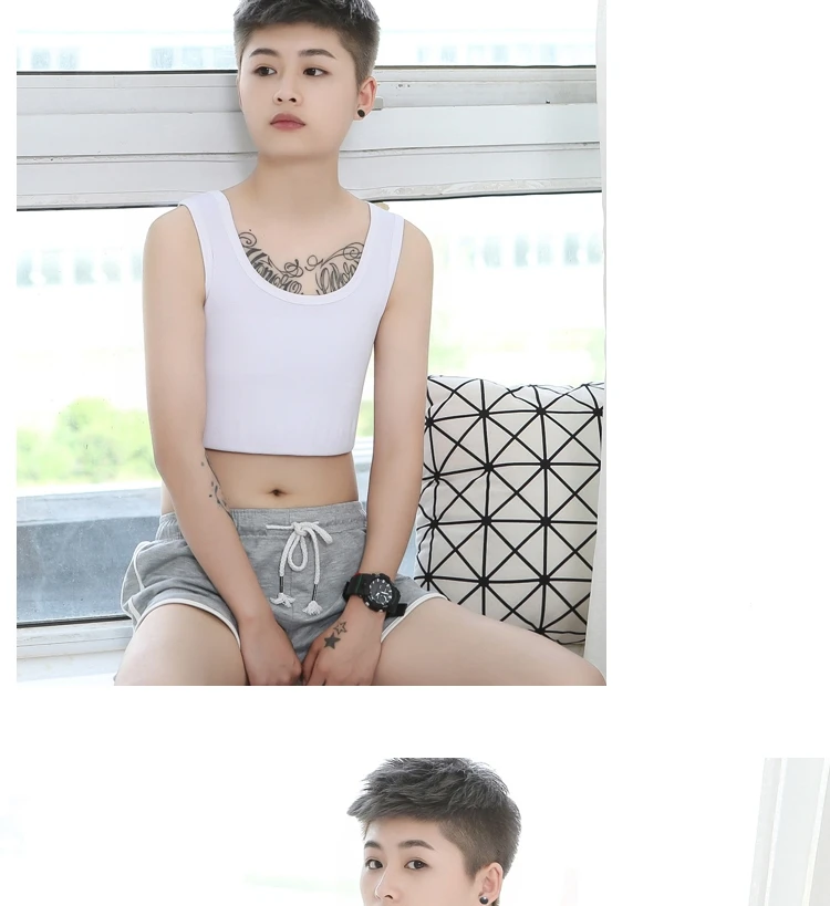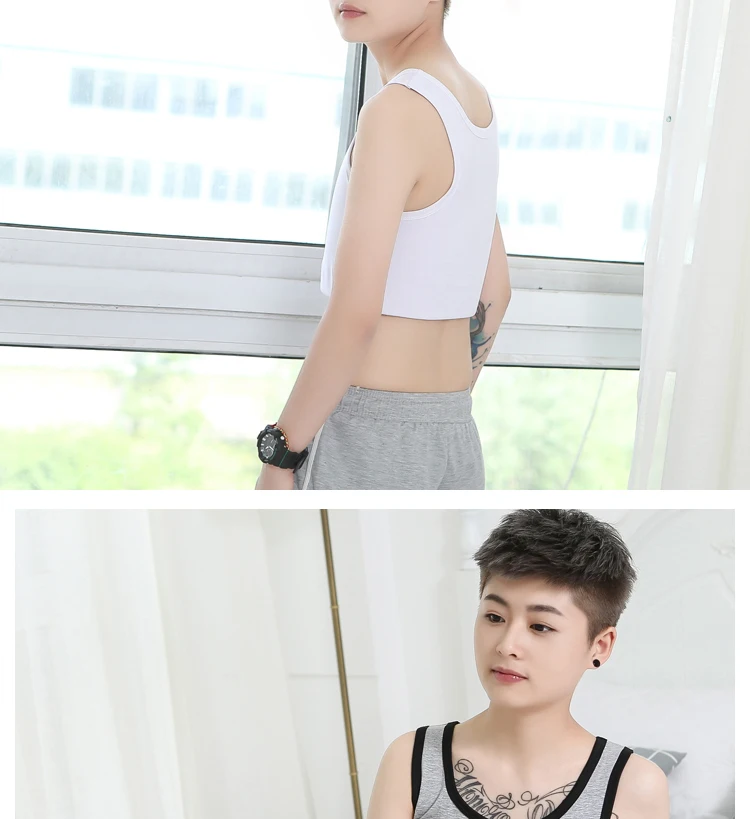 Предназначен для транссексуалов, FTM,tomboys, транс-лесбиянок или для шоу на сцене, или в качестве спортивного бюстгальтера, делает грудь плоской и становится крутой.