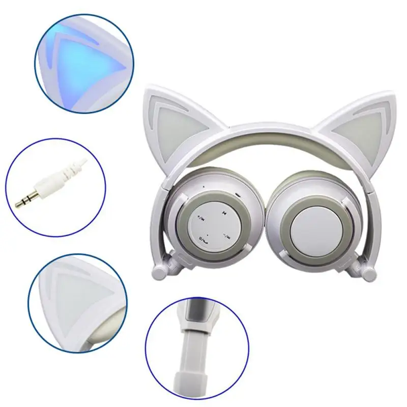Отзывы о LED Ear Headphone Cat Earphone Flashing Glowing Headset Gaming Earphones For Adult And Children Headphones 2020 Электроника