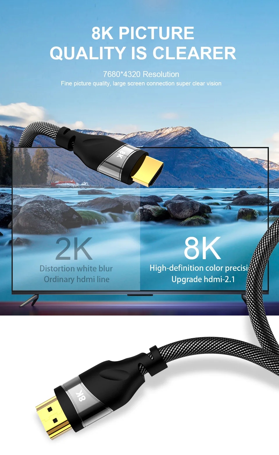Описание товара: Разрешение стандарта видео 8K определяется как 7680 × 4320, что в 16 раз превышает разрешение 2K. Каждая рамка имеет более 33 миллионов пикселей, и ее ультра-hd эффект может принести удовольствие от погружения. По сравнению с видео 4K, которое в настоящее время находится в зачаточном состоянии, 8K не только превосходит разрешение, но также имеет более строгие технические требования для устройств отображения и линий передачи. 8K поддерживает 4K @ 120hz и 8K @ 60hz, но имеет только длину 1-3M. 4K Поддержка 4k @ 60 Гц и 1080p @ 120 Гц. Спецификация: Последняя версия кабеля HDMI 2,1 Спецификация: защитная проволока высокой плотности 28AWG коммерческий Цвет: медный чехол 24K позолоченный Материал соединения: ПВХ покрыт высокой чистотой бескислородный медный проводник Тип интерфейса: стандартный A-A HDMI Применимый объем: все устройства с интерфейсом HDMI могут использовать подключение кабеля HDMI, например: Dvd-плеер подключен к HDTV, проектор hd плеер, HDMI интерфейс с компьютером, подключенным к HDTV, проектор, PS3 игровая консоль подключена к HDTV, проектор... Посылка включает: 1 * HDMI-HDMI кабель