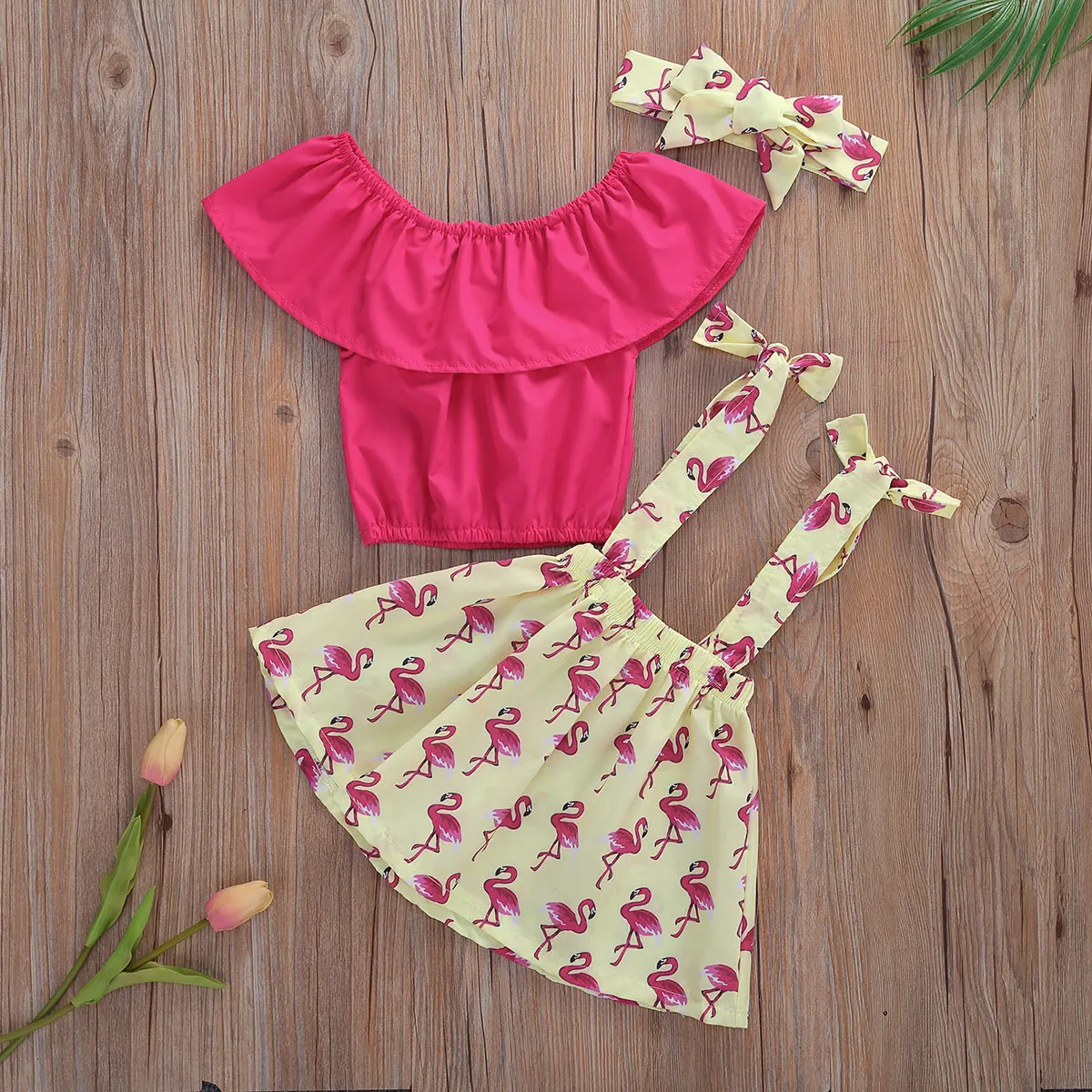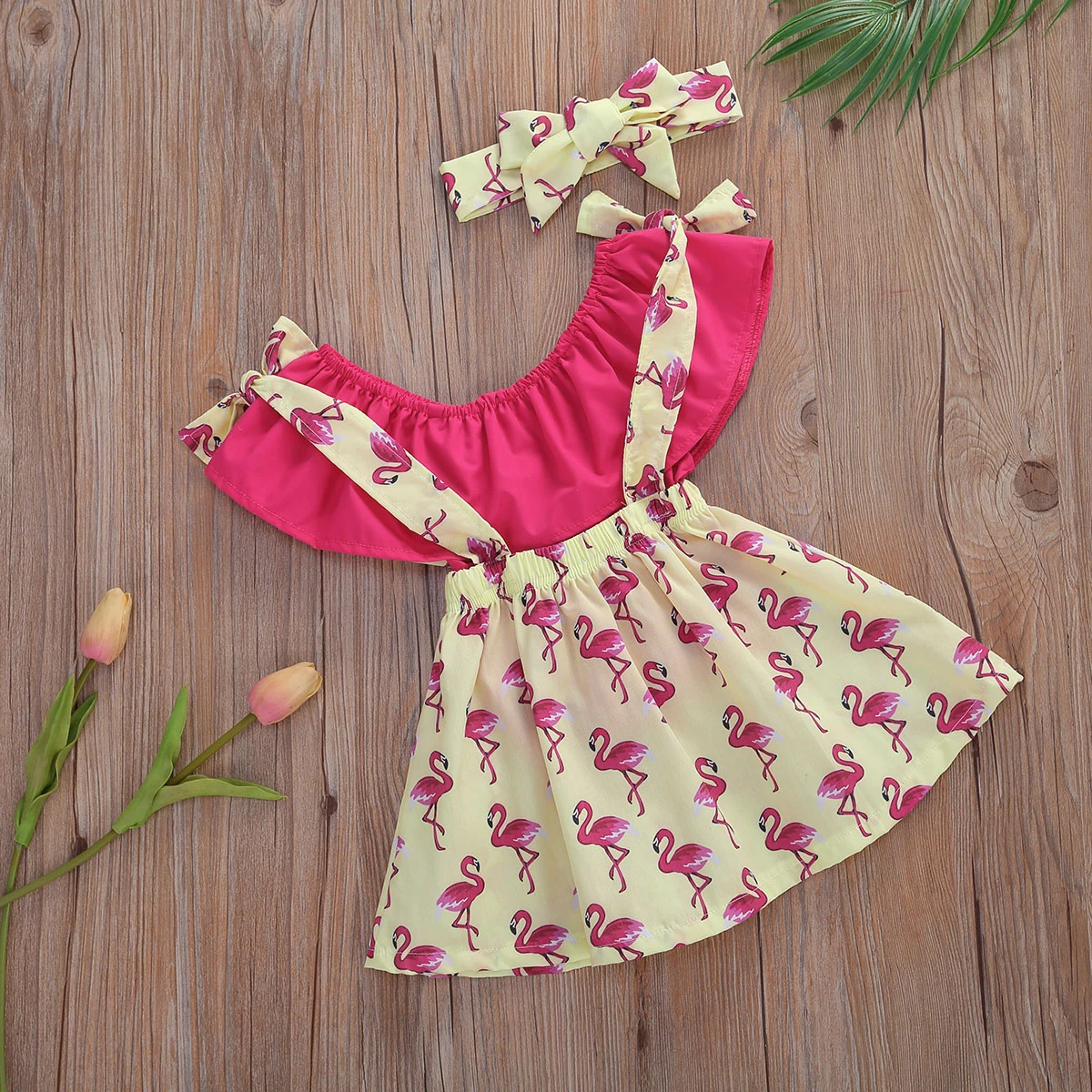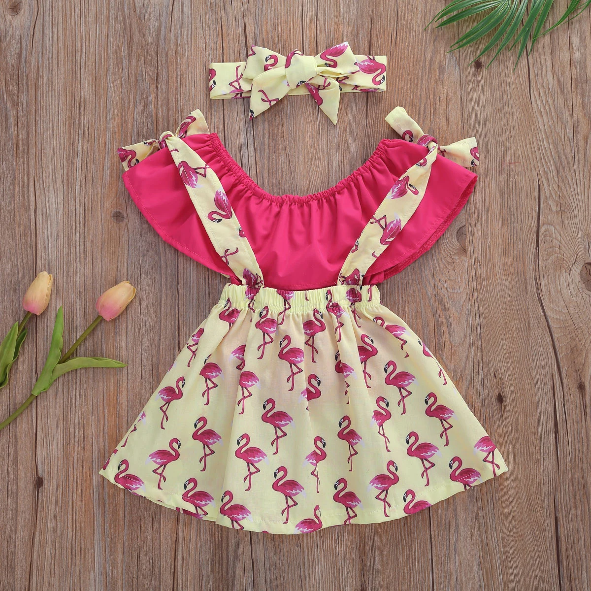 Модный топ для девочек; Юбка на подтяжках с изображением фламинго; Комплект из двух предметов; Идеальный костюм для вашей маленькой принцессы; Летний освежающий и комфортный, полный джентльмена и жизненной силы. Этот стильный костюм из топа и юбки идеально подходит для торжественных случаев.Размеры таблицей: