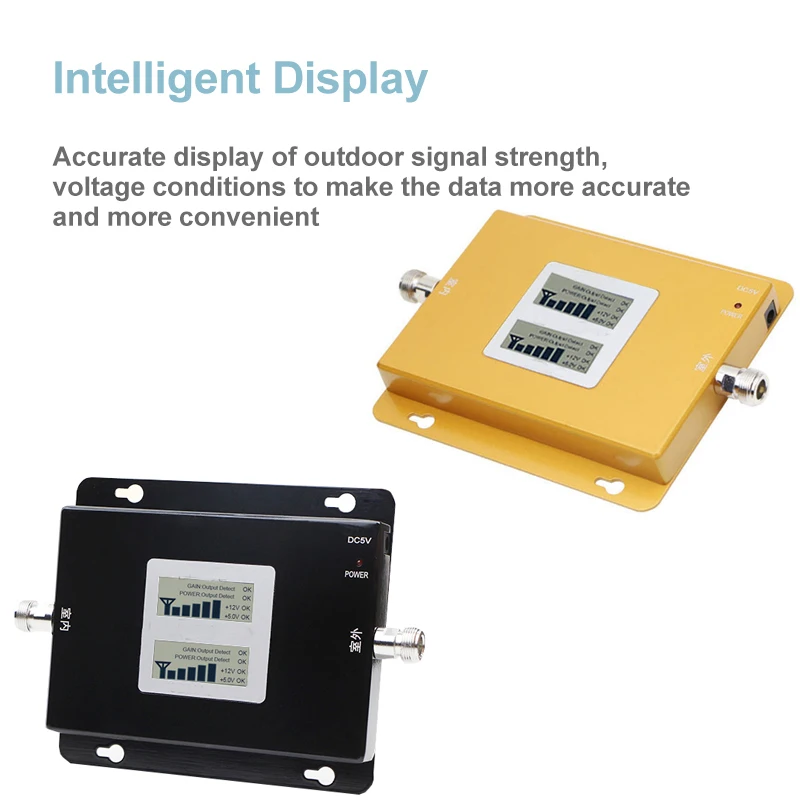 1). Два диапазона, разные цвета на выбор. 2).Dual band 2g, 3g, с функцией 850/1900 МГц и Dual band 2g 4g 850/1700-2100 МГц 3) Коэффициент усиления: 65 дБ 4) Выходная мощность: 20dBm 5). Адаптер питания: вилка стандарта ЕС, США, Австралии, Великобритании 6). Источник питания: переменный ток: 110 ~ 220 В; Постоянный ток: 5 В, 3 А 7). Тип соединителя: N гнездо 8). Покрытие: до 500 кв. М без барьера 9). Улучшенный Тип сети: 2G Voice и 2G 3G 4G интернет-данные