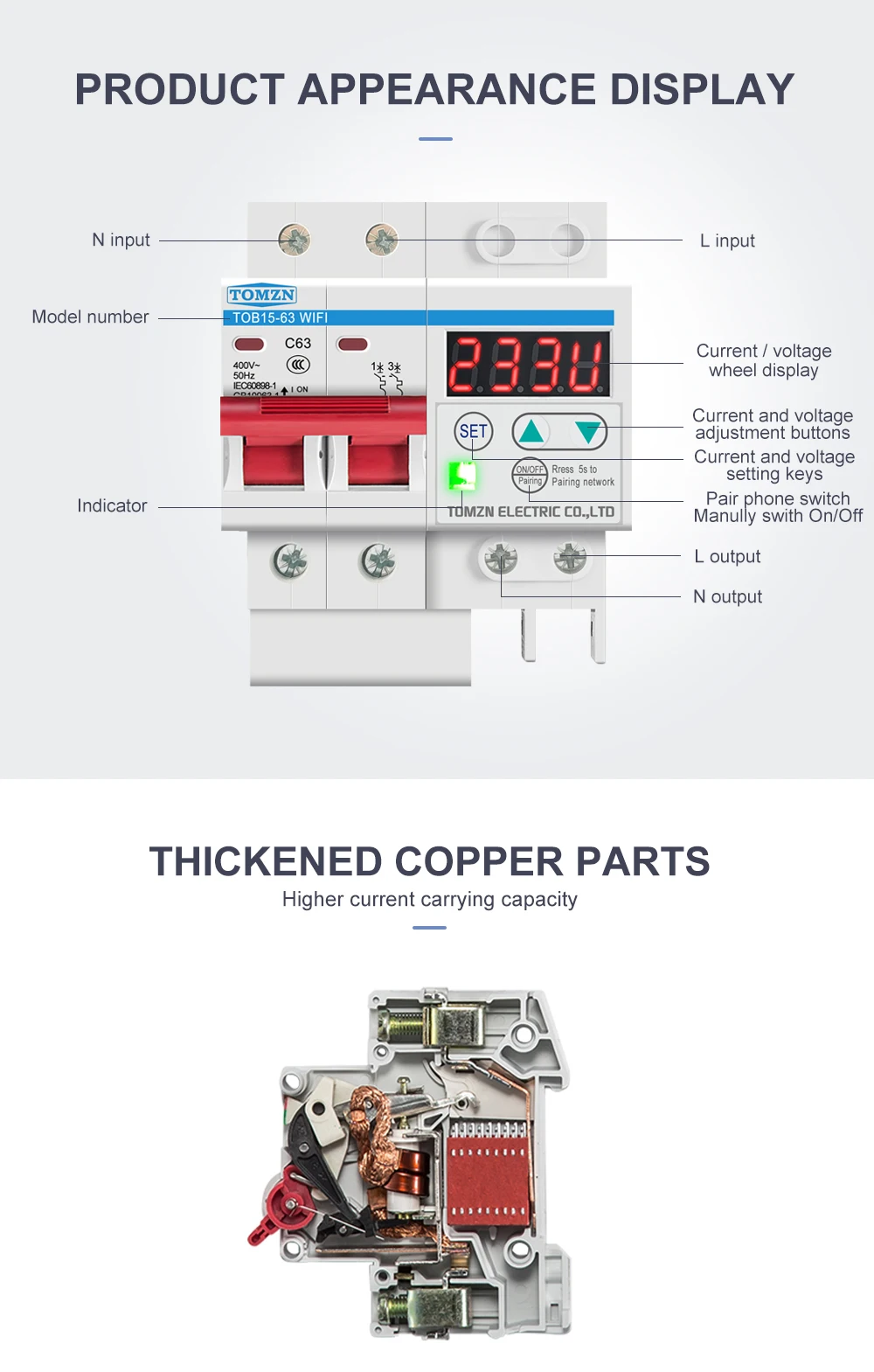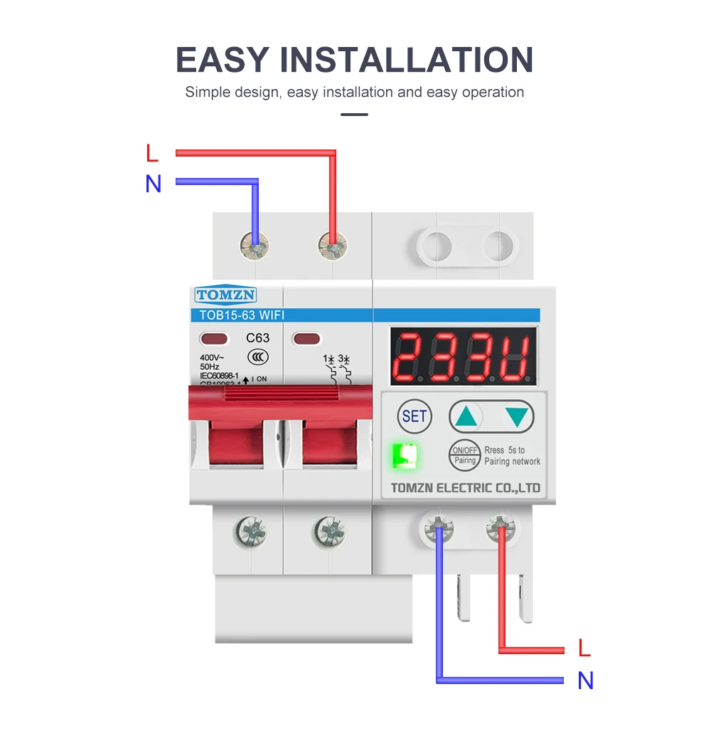 3. Over current protection 1A-63A (adjustable) (default: 40A)
