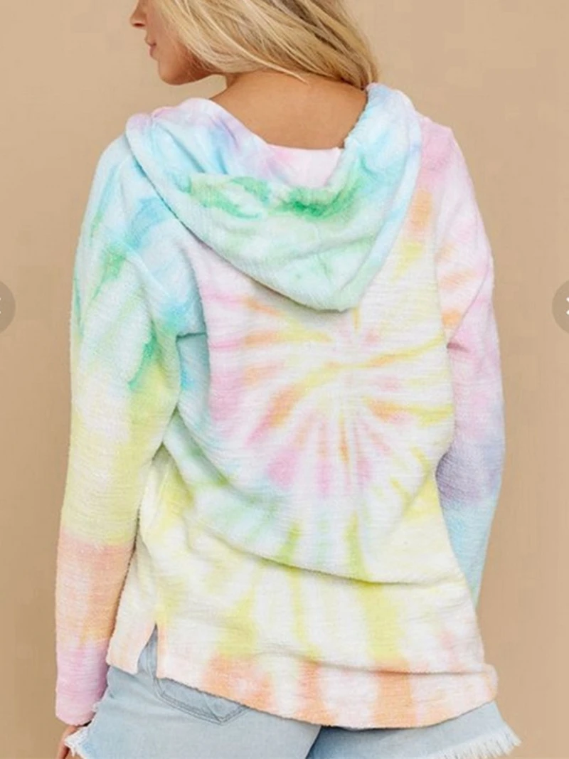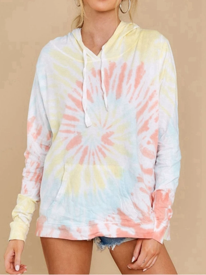 Отзывы о Худи женское с принтом тай-дай Свитшот в стиле оверсайз длинными рукавами