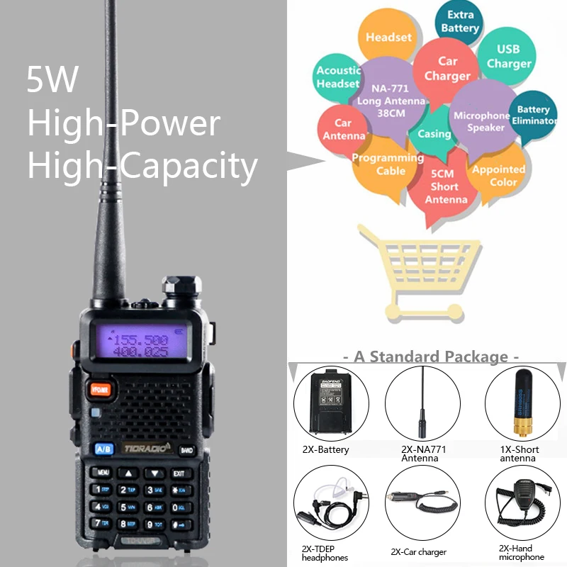 TIDRADIO Walkie talkie TD-UV5R Radio 5W Ham Upgraded Version of Baofeng UV-5R Two Way Dual Band UHF VHF Мобильные телефоны и - купить