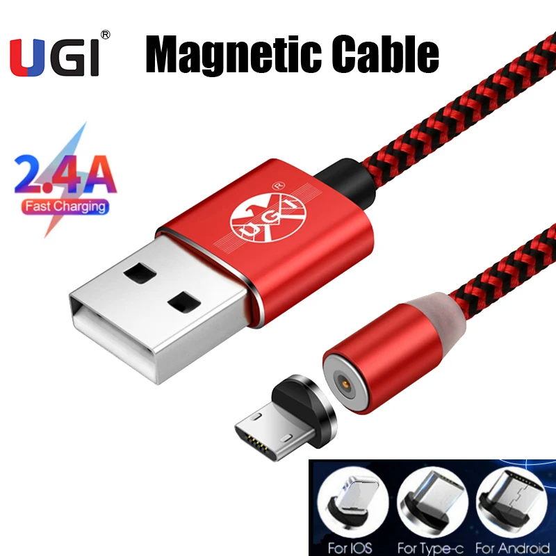 Купить UGI 360° Магнитный Кабель 2.4A Быстрая Зарядка Кабеля Micro USB Type C Для IOS Xiaomi RedMi Tablet Nylon Red on.