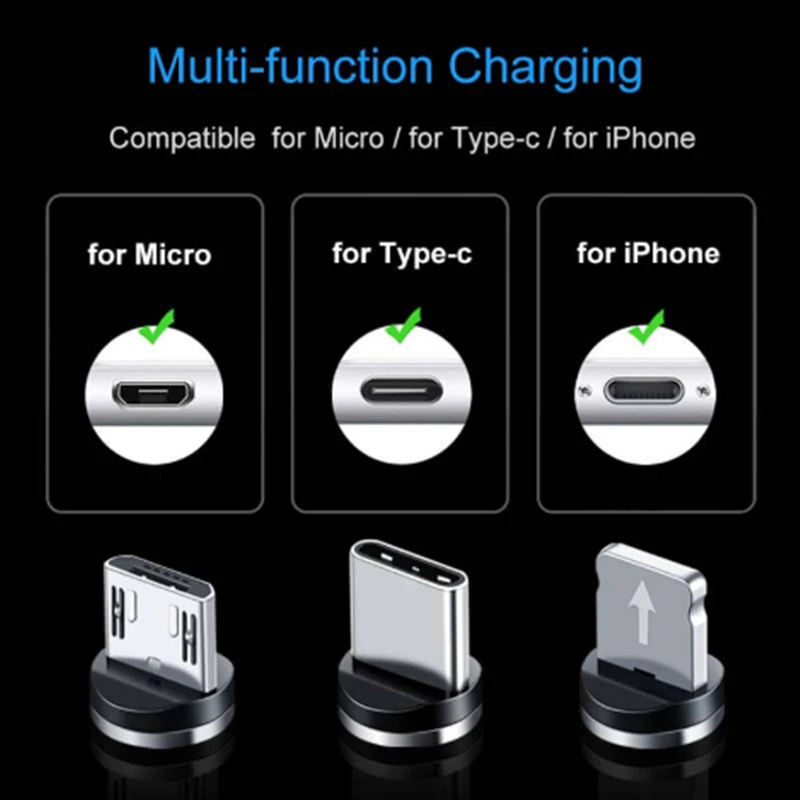 Магнитные кабели UGI 360 °, а, кабель для быстрой зарядки, кабель Micro USB Type-C, кабель USB C для IOS, планшета Xiaomi RedMi, нейлоновый красный