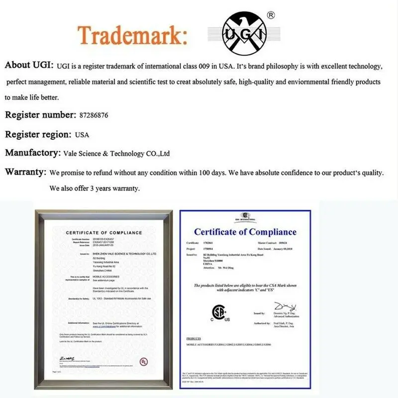 UGI®-это очень инновационный бренд 3C, стремящийся к отличному опыту работы с продуктами и опыту работы с клиентами для наших уважаемых клиентов. Мы хорошо слушаем отзывы каждого клиента, постоянно совершенствуем наши продукты и услуги.