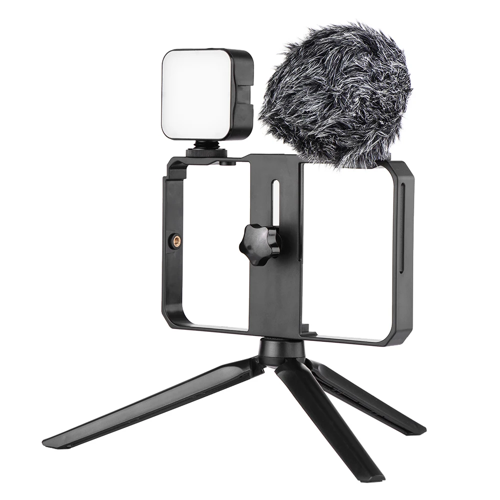 Andoer смартфон видео клетка комплект включая мини LED заполняющие огни + мини микрофон с ударным креплением ветер экран для телефона видео