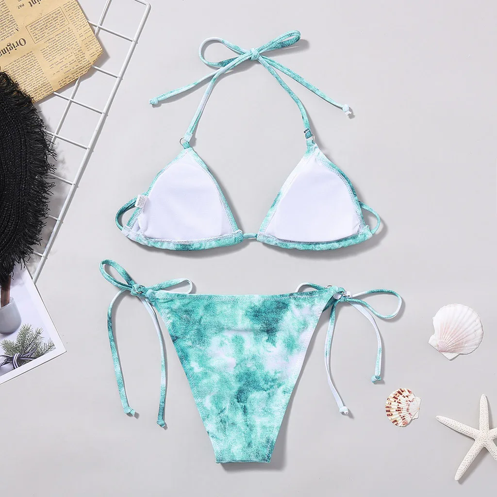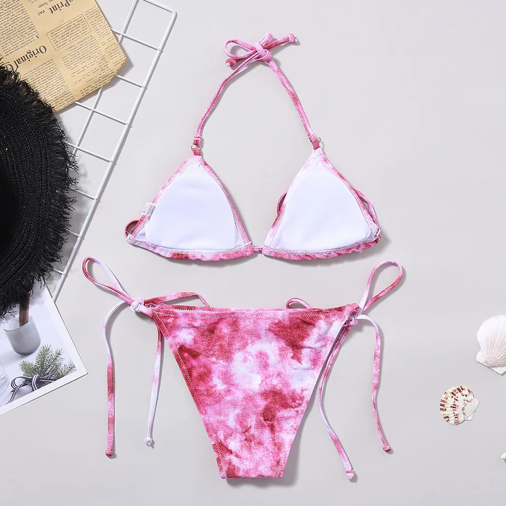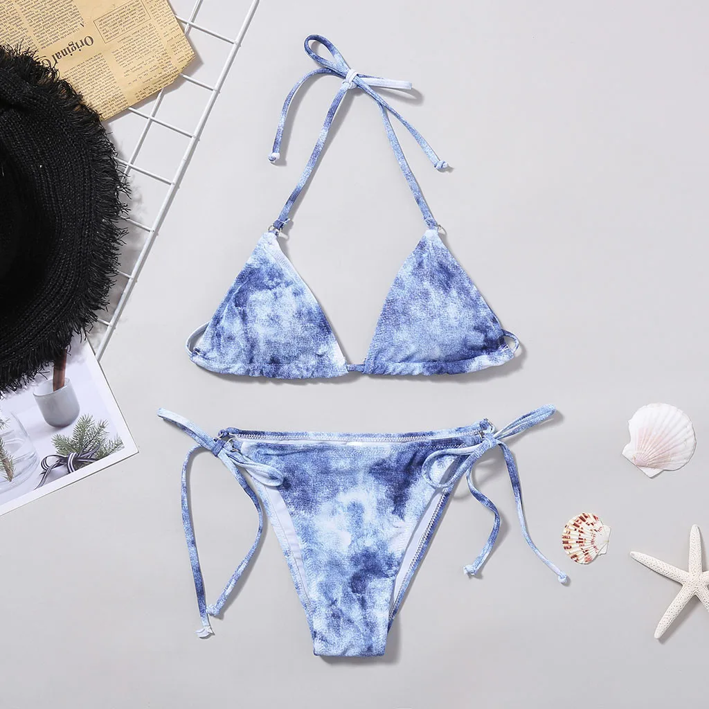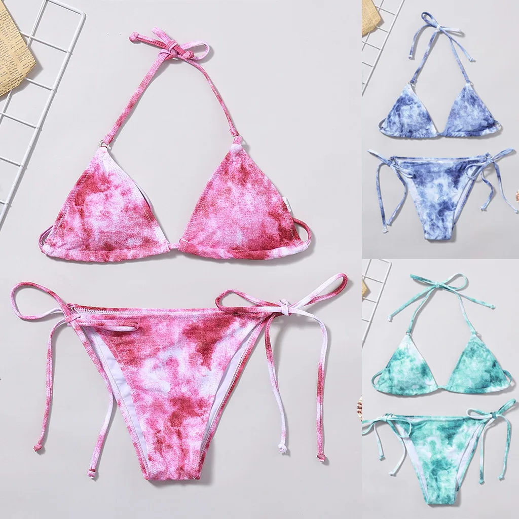 Купить Женский купальник-бикини с высокой талией без бретелек сексуальный принтом Tie-Dye