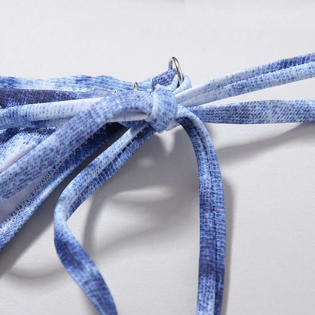 Отзывы о Женский купальник-бикини с высокой талией без бретелек сексуальный принтом Tie-Dye