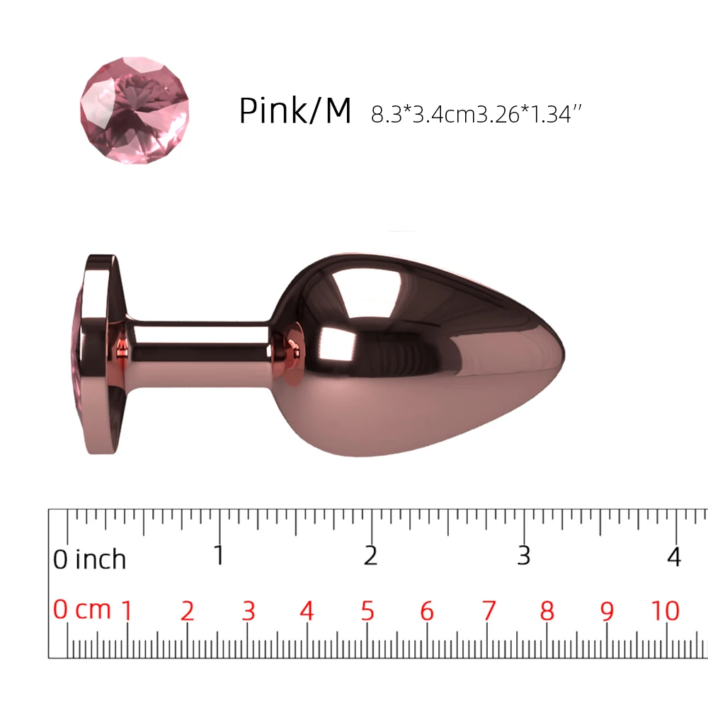 3 размера гладкая металлическая пробка из розового золота с кристаллами Анальная - купить