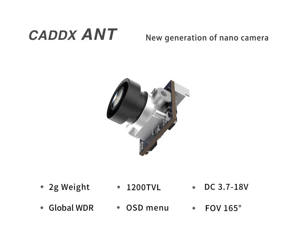 Caddx -Ant Nano FPV камера 1200TVL Global WDR с OSD 2g Ультра легкий 1,8 мм объектив 16:9 / 4:3 для FPV гоночного дрона самолета с фиксированным крылом аэрофотосъемки