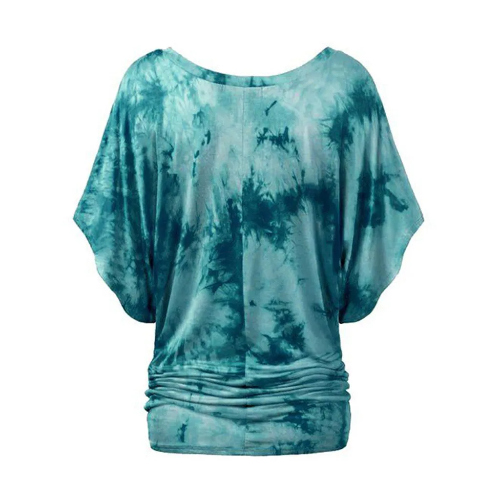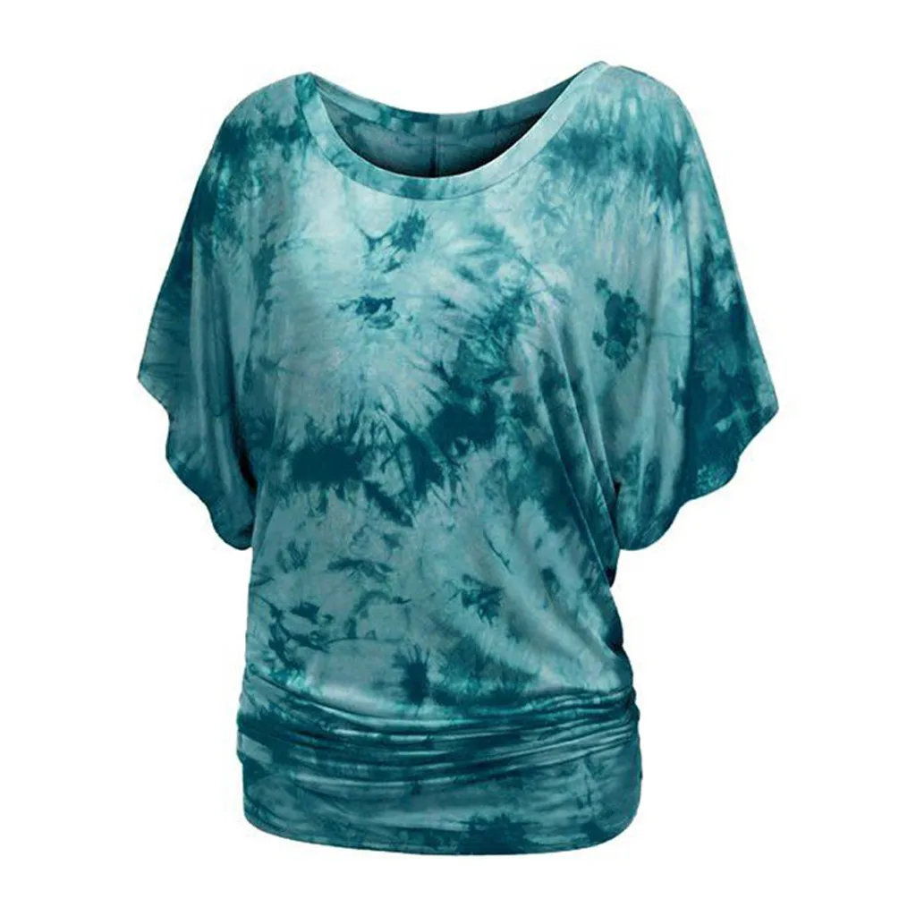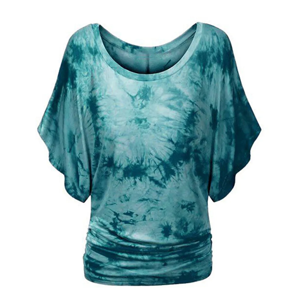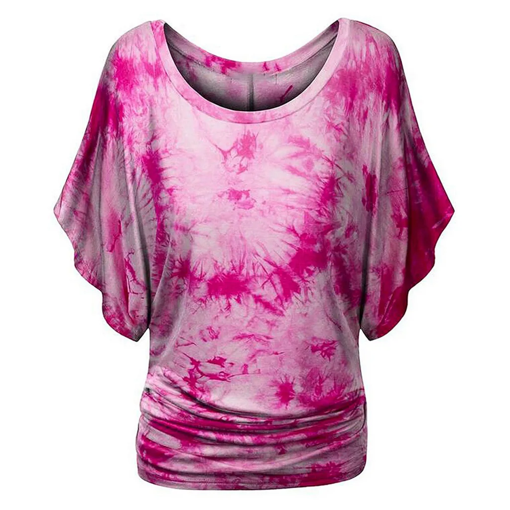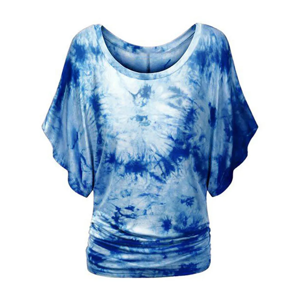 Модная женская футболка с круглым вырезом, коротким рукавом, рукавом «летучая мышь», с принтом в виде галстука-красителя