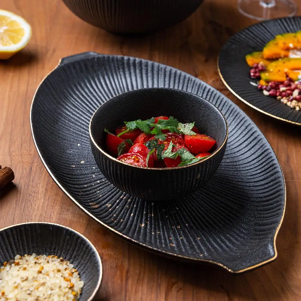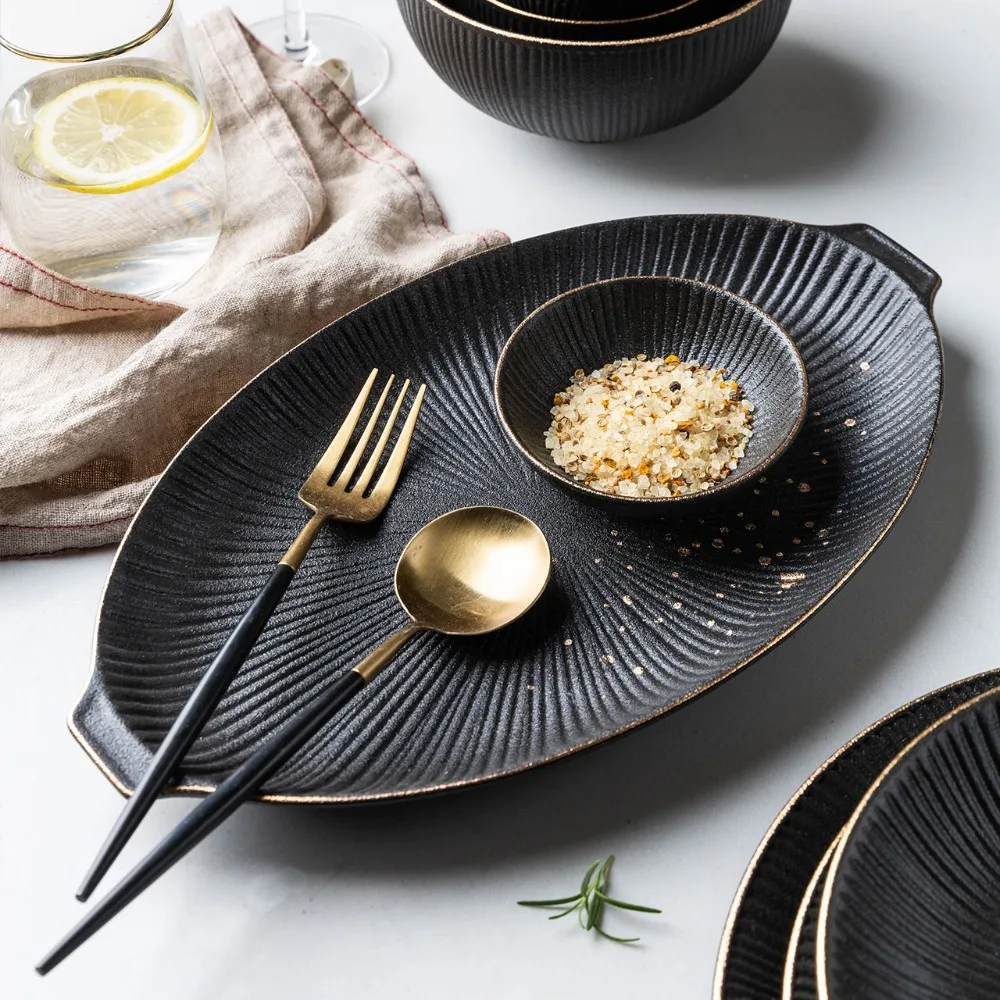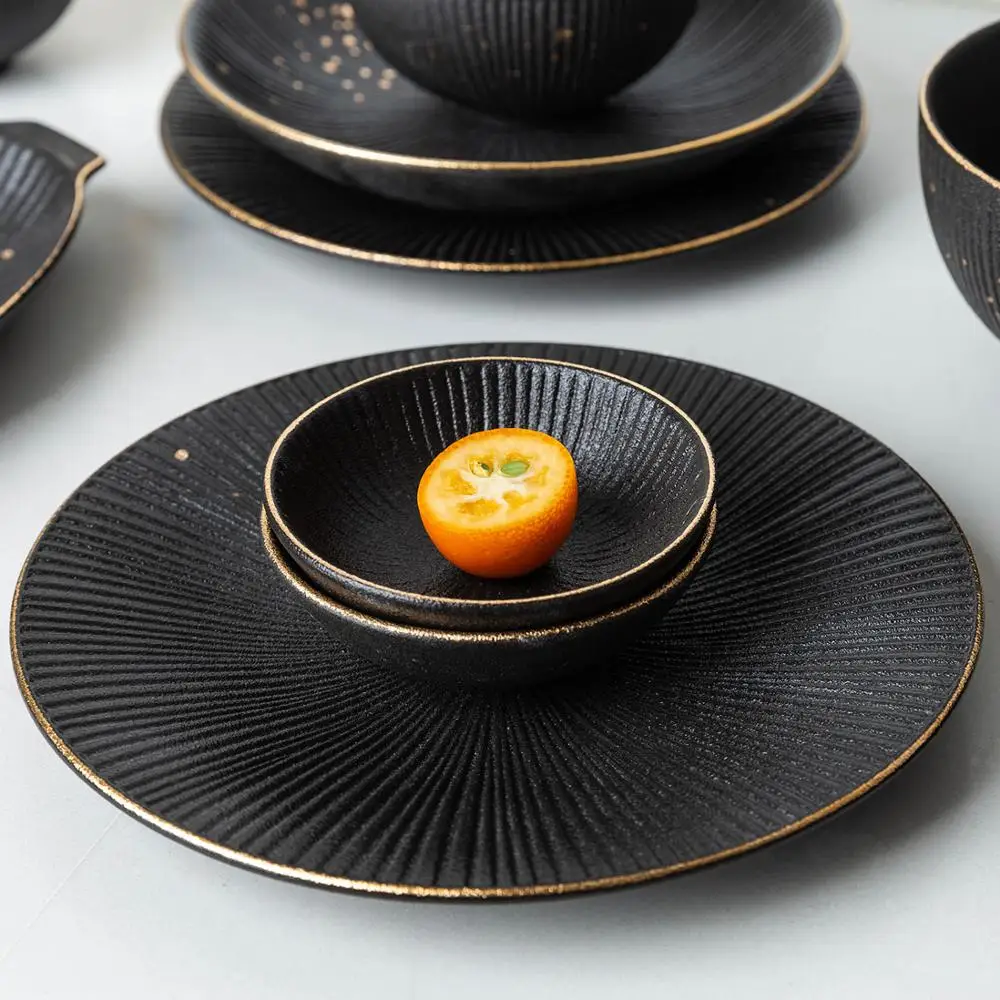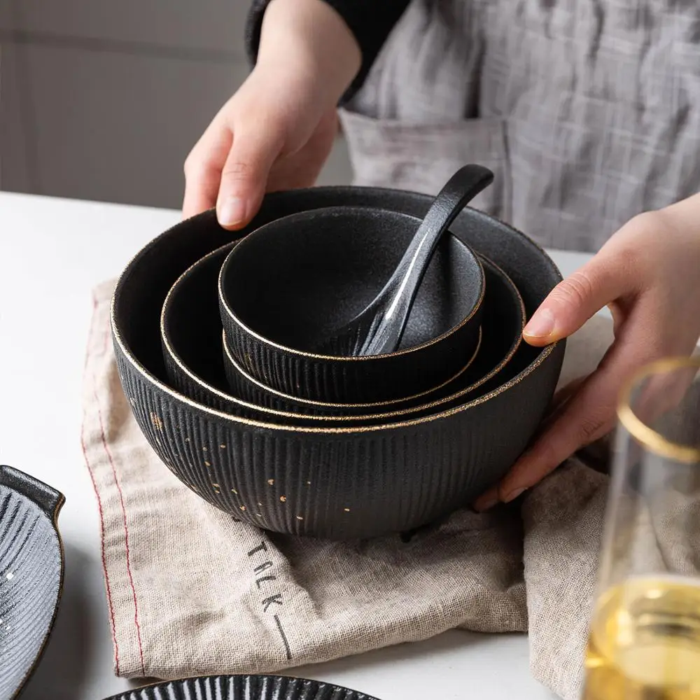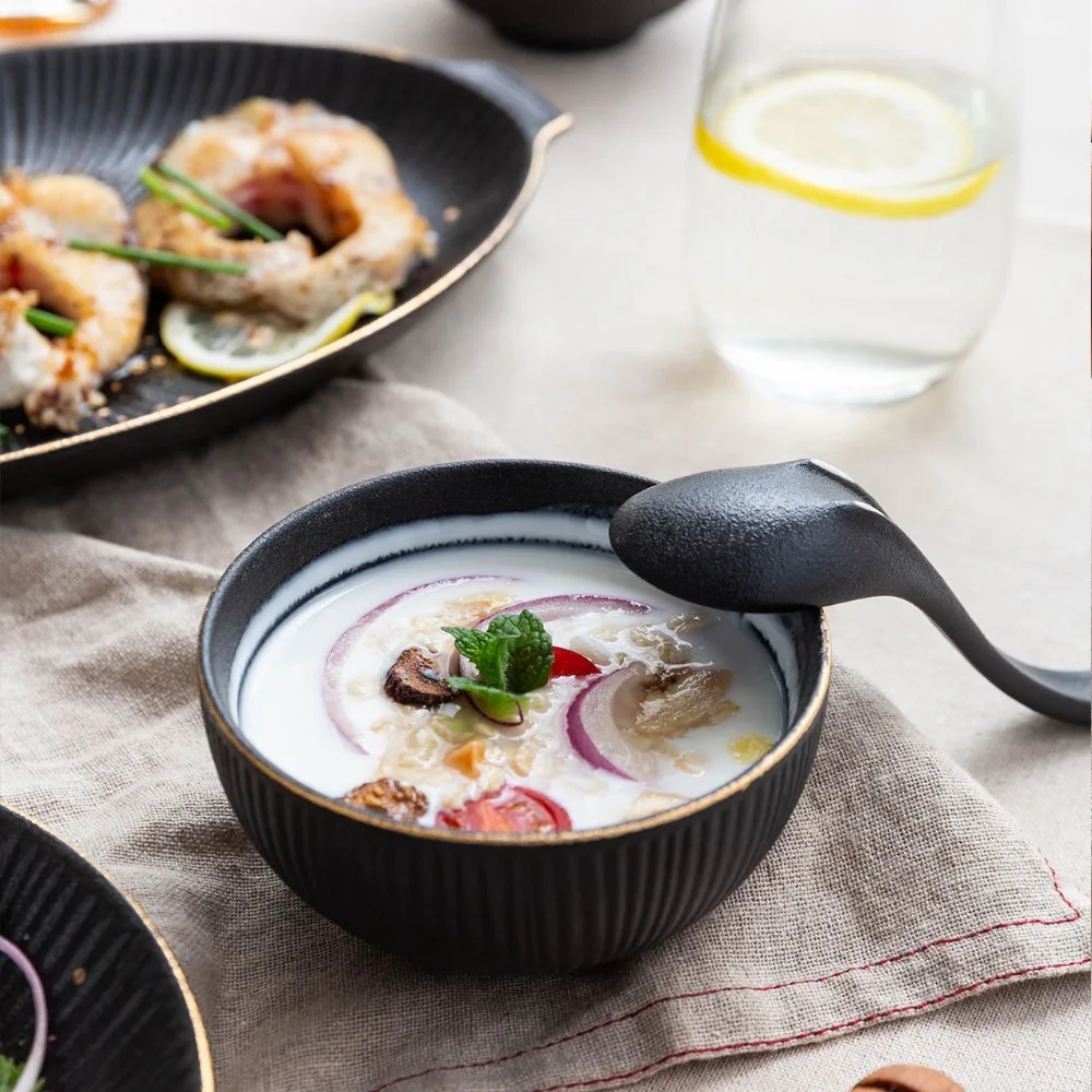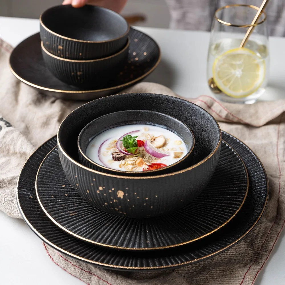MDZF керамическая черная обеденная тарелка Золотой горошек суп рисовая миска - купить