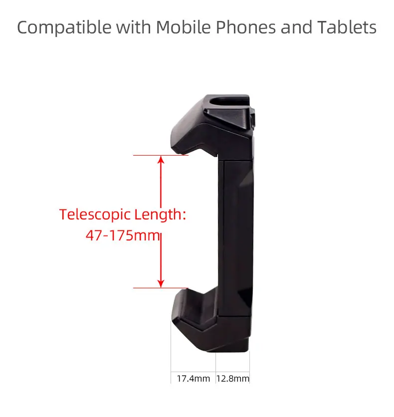 Бренд: XILETU Модель: зажим для планшета XJ-13 Материал: ABS + алюминиевый сплав Вес изделия: 60 г Телескопическая длина: 47-175 мм Цвет: черный Отверстие под винт: 1/4 ″ общее отверстие под винт * 2