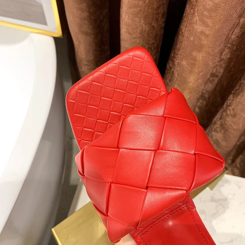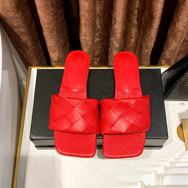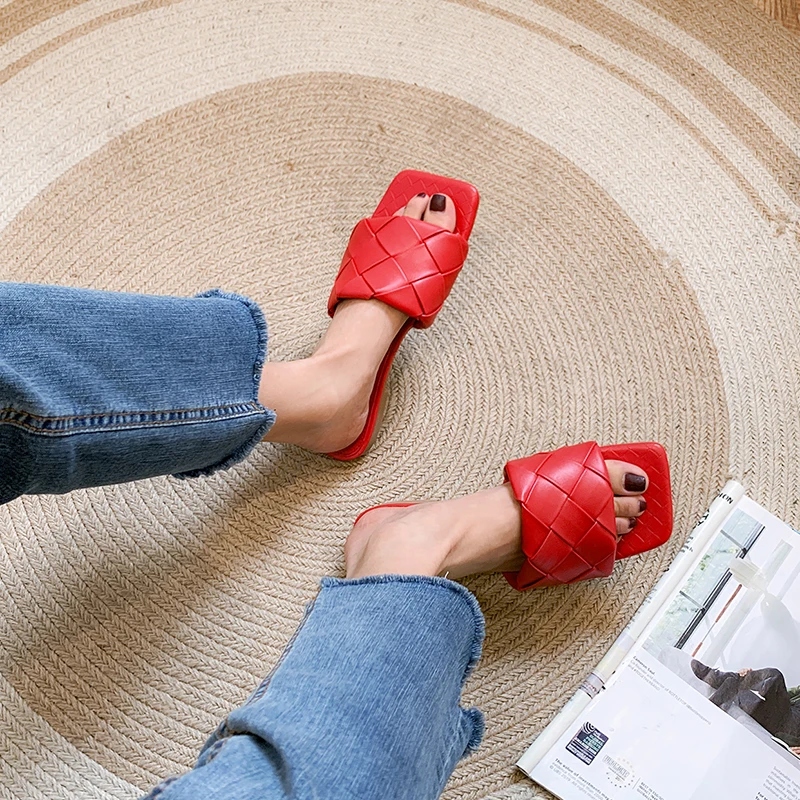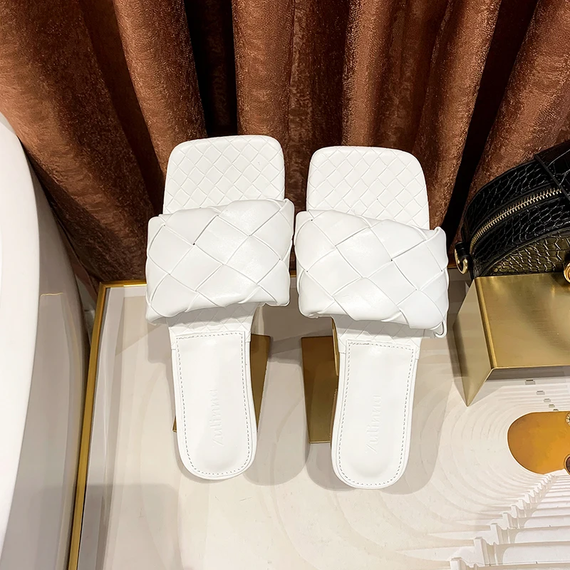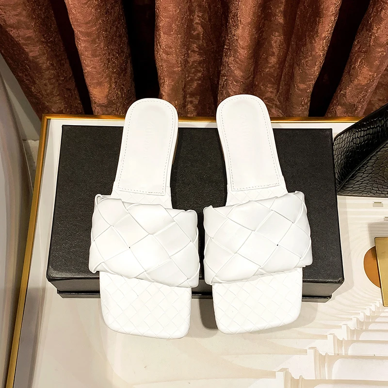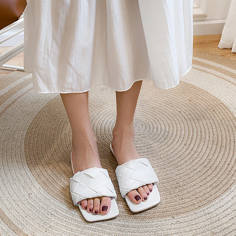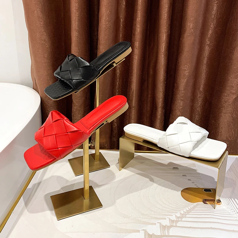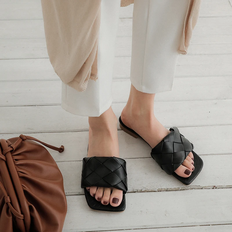 KATELVADI/2020 Летние черные плетеные тапочки Пляжные шлепанцы с квадратным носком - купить