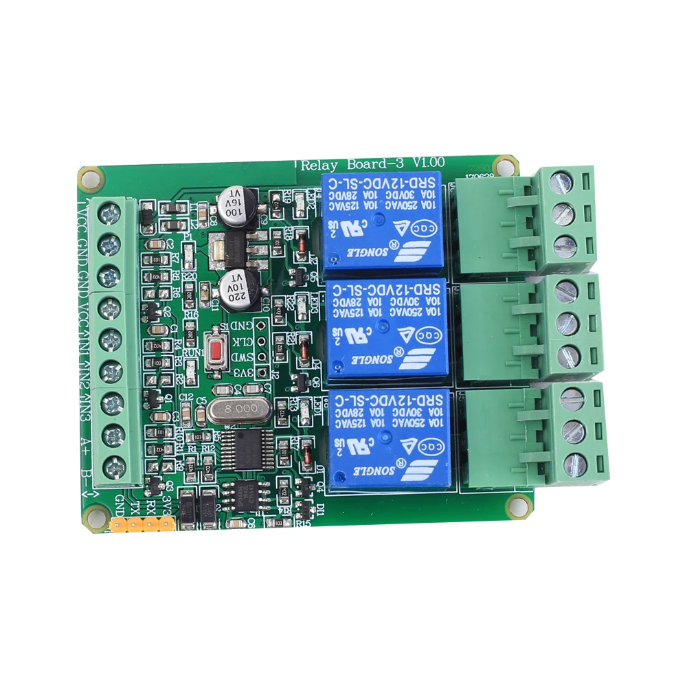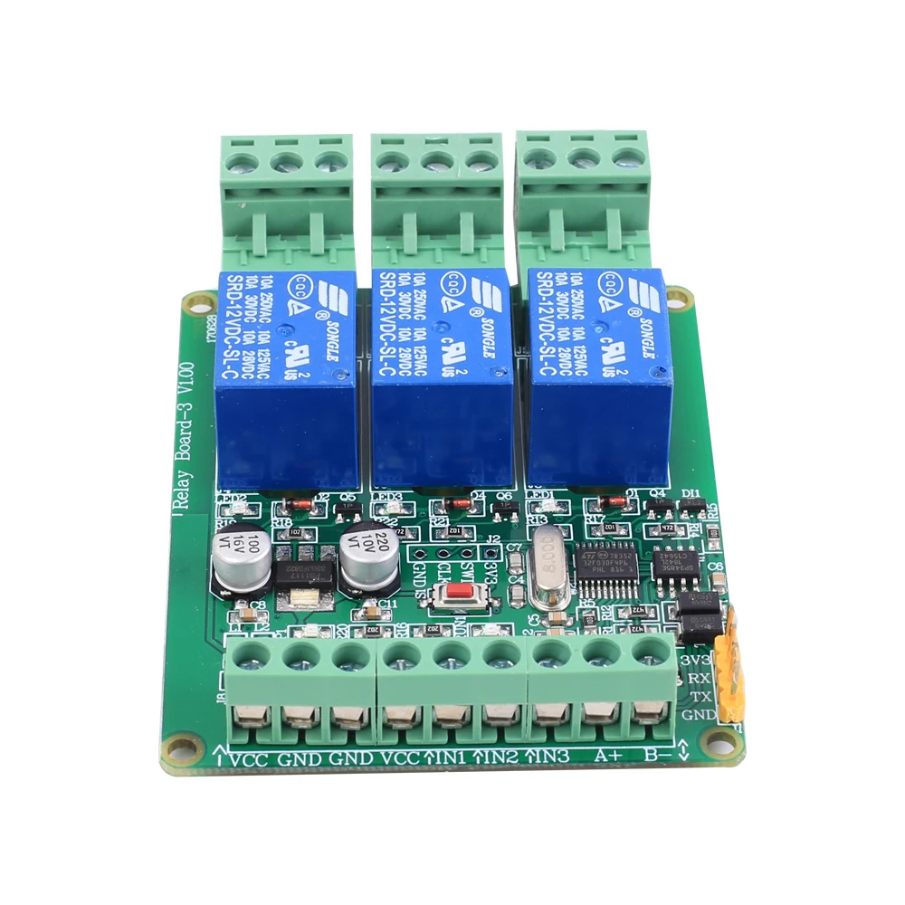 Купить RS485 Modbus-RTU 12 В 3-битный релейный модуль 3-канальный контроллер переключателя для